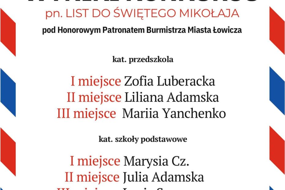 Z wielką radością ogłaszamy wyniki naszego konkursu zorganizowanego z Urzędem Miasta w Łowiczu na najpiękniejszy list do Świętego Mikołaja! Dziękujemy wszystkim, którzy podzielili się swoimi… Dowiedz się więcej »Wyniki konkursu „List do Świętego Mikołaja”!