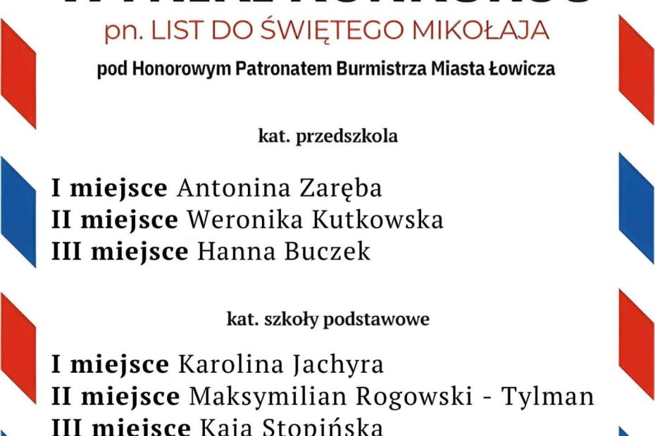 Pierwsze prezenty od Świętego Mikołaja trafiły już wczoraj do kilku dzieci z naszego miasta, które wzięły udział w konkursie na list do Świętego Mikołaja. Naszemu… Dowiedz się więcej »Wyniki konkursu pn. List do Świętego Mikołaja