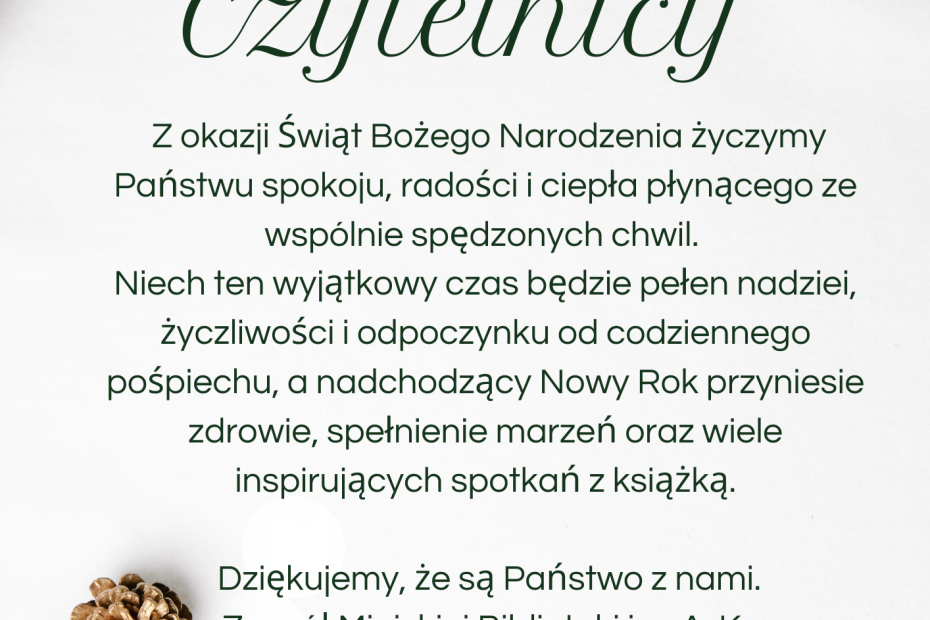 Już 4 lutego 2026 r. (środa) o godz. 16.00 odbędzie się kolejne spotkanie Klubu Książki „Splot Kobiet”. Tym razem porozmawiamy o twórczości Małgorzaty Gutowskiej –… Dowiedz się więcej »Klub Książki „Splot Kobiet” zaprasza!