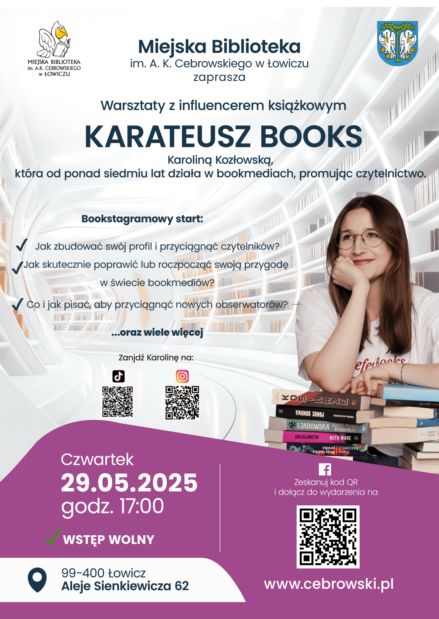 Serdecznie zapraszamy na spotkanie autorskie z Justyną Suchecką, które odbędzie się we wtorek, 27 maja 2025 roku o godzinie 17:00 w Miejskiej Bibliotece im. A.K. Cebrowskiego w Łowiczu (Aleje Sienkiewicza 62). Temat spotkania: „Jak z płatkami śniegu możemy wywołać lawinę pozytywnych zmian?” Justyna Suchecka - Autorka bestsellerowych książek dla i o młodzieży: “Young Power. 30… Dowiedz się więcej »Spotkanie autorskie z Justyną Suchecką