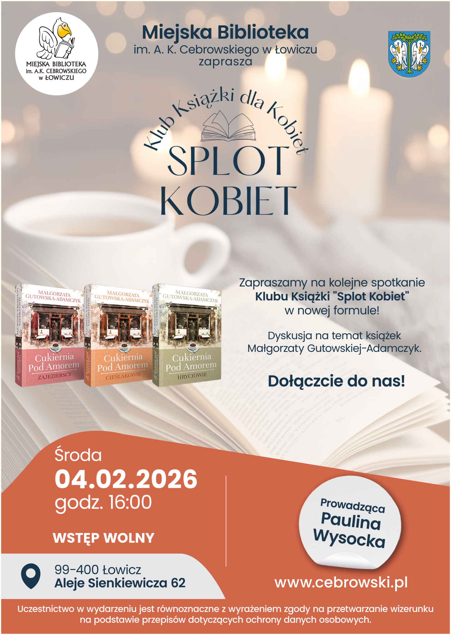 Już 4 lutego 2026 r. (środa) o godz. 16.00 odbędzie się kolejne spotkanie Klubu Książki „Splot Kobiet”.