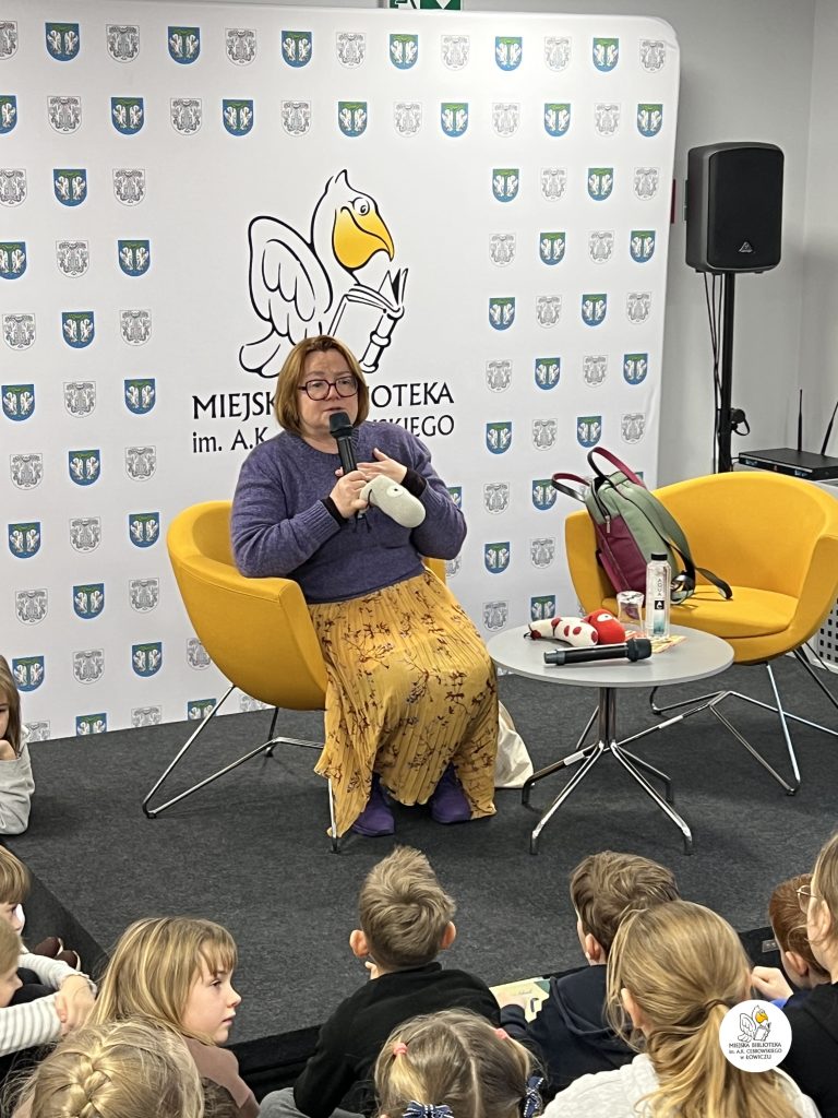 W naszej bibliotece 26 listopada odbyło się spotkanie autorskie z pisarką Justyną Bednarek – autorką niezwykle popularnych wśród dzieci serii książek o przygodach dziesięciu skarpetek. Jej autorstwa jest również wiele