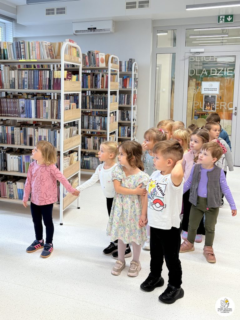 Wczoraj nasza biblioteka miała wyjątkowych gości — odwiedziły nas dzieci z Przedszkola nr 4 „Słoneczko” w Łowiczu. Dzieci wzięły udział w lekcji bibliotecznej, podczas której z ogromnym zainteresowaniem poznawały świat