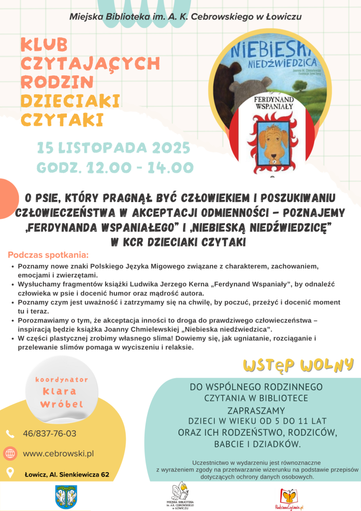 Tym razem byliśmy bezkonkurencyjni! Zdobyliśmy nagrodę główną w ogólnopolskim konkursie „Najciekawsze spotkania Klubów Czytających Rodzin 2025”!Jesteśmy najlepsi w całej Polsce! Zobaczcie wyniki 👉 https://calapolskaczytadzieciom.pl/aktualnosci/zobaczcie-wyniki-konkursu-na-najciekawsze-spotkania-klubow-czytajacych-rodzin-2025/ Serdeczne gratulacje dla naszej koordynatorki Klary