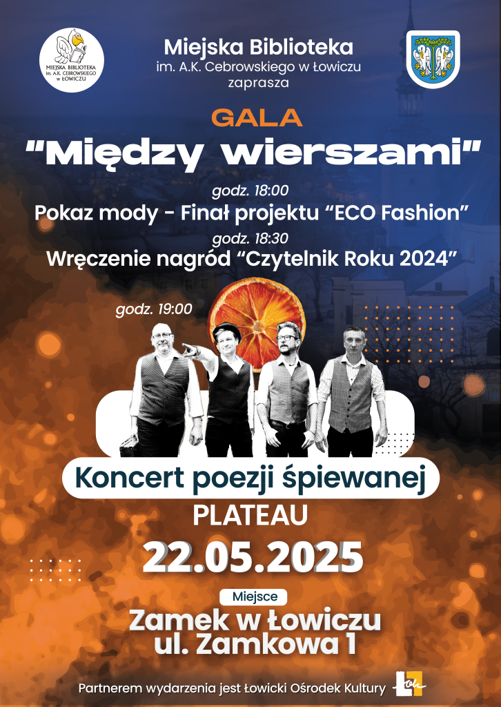 Burmistrz Miasta Łowicza Mariusz Siewiera oraz Dyrektor Miejskiej Biblioteki im. A. K. Cebrowskiego w Łowiczu Karolina Przyżycka serdecznie zapraszają na galę „Między wierszami”, która odbędzie się już 22 maja 2025
