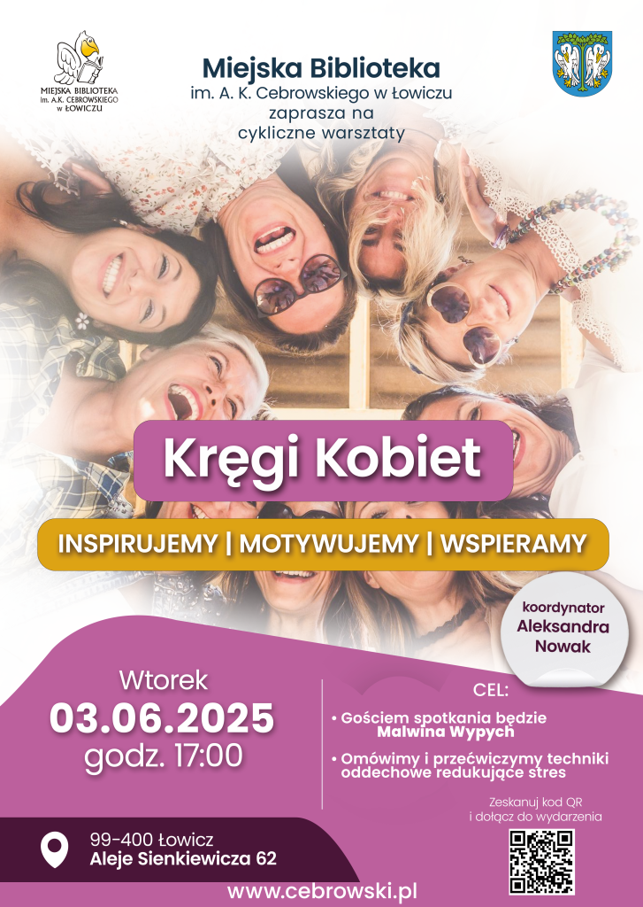 Po dwóch inspirujących spotkaniach z ogromną radością zapraszamy na kolejne spotkanie Klubu „Kręgi Kobiet”, które odbędzie się:📅 3 czerwca 2025 r. (wtorek)🕔 godz. 17:00📍Miejska Biblioteka w Łowiczu Tym razem naszym