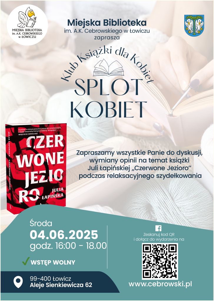 Przed nami kolejne inspirujące spotkanie klubu książki „Splot Kobiet”! Tym razem porozmawiamy o pełnej napięcia i tajemnic książce Juli Łapińskiej „Czerwone Jezioro”. Będzie to doskonała okazja, by wspólnie zagłębić się