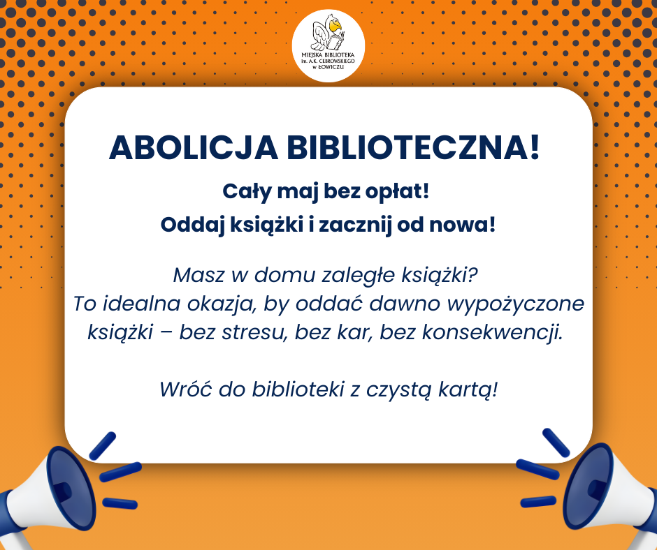 Masz w domu książki, które „trochę się zasiedziały”? Nie chowaj ich dłużej po szufladach! W maju dajemy Ci szansę na powrót do biblioteki bez żadnych opłat za przetrzymanie! 🔹 Przez