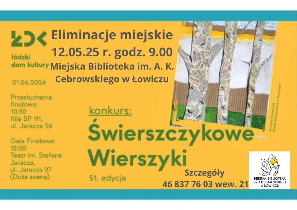 Dziś, 12 maja 2025 r., w Miejskiej Bibliotece im. A. K. Cebrowskiego w Łowiczu odbył się II etap konkursu recytatorskiego „Świerszczykowe Wierszyki 2025”, skierowanego do dzieci w wieku 6–10 lat