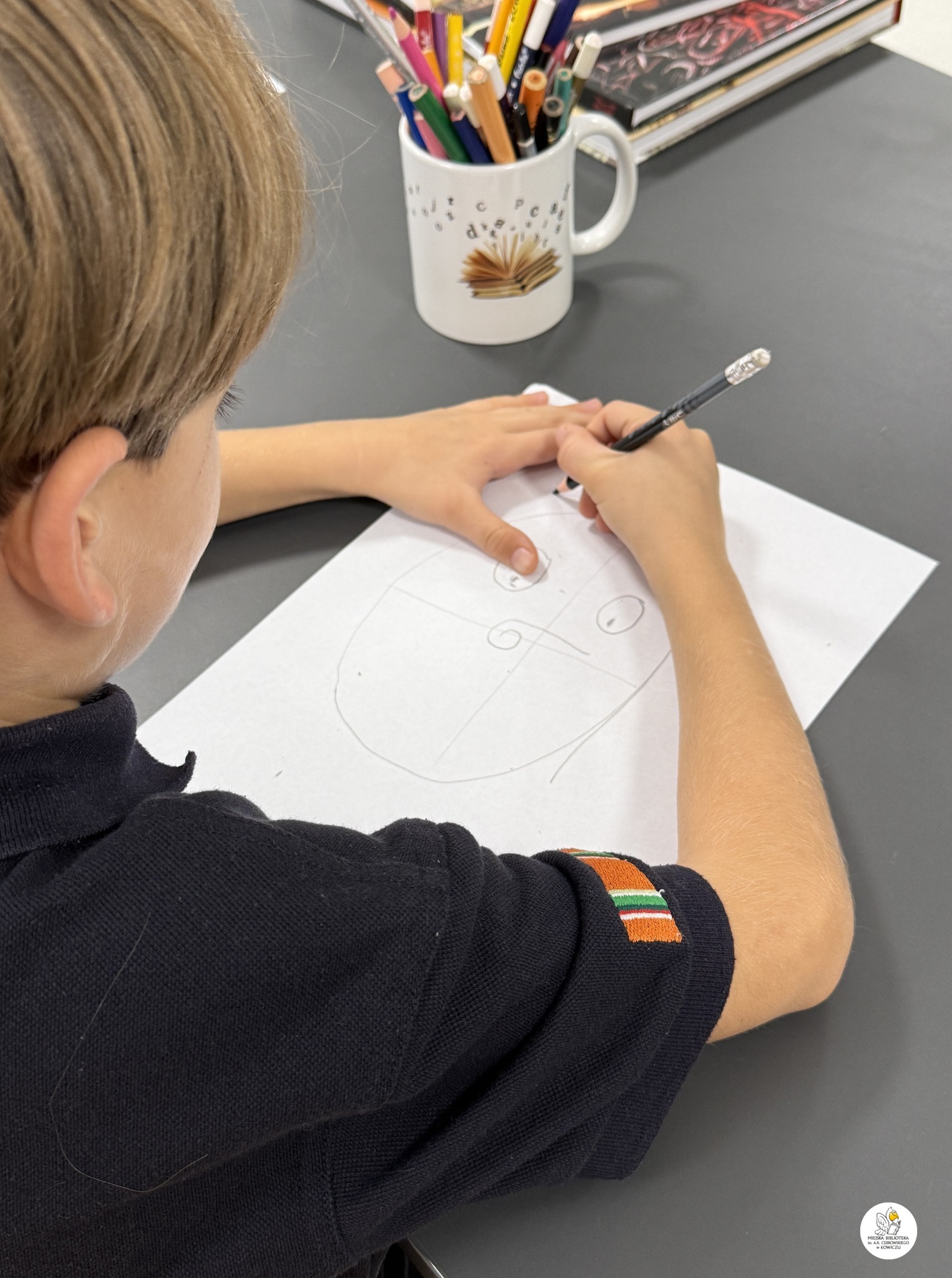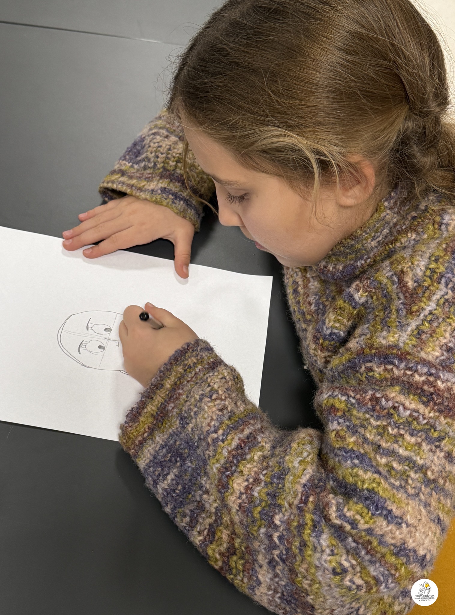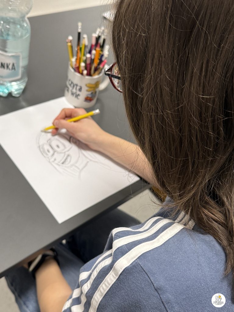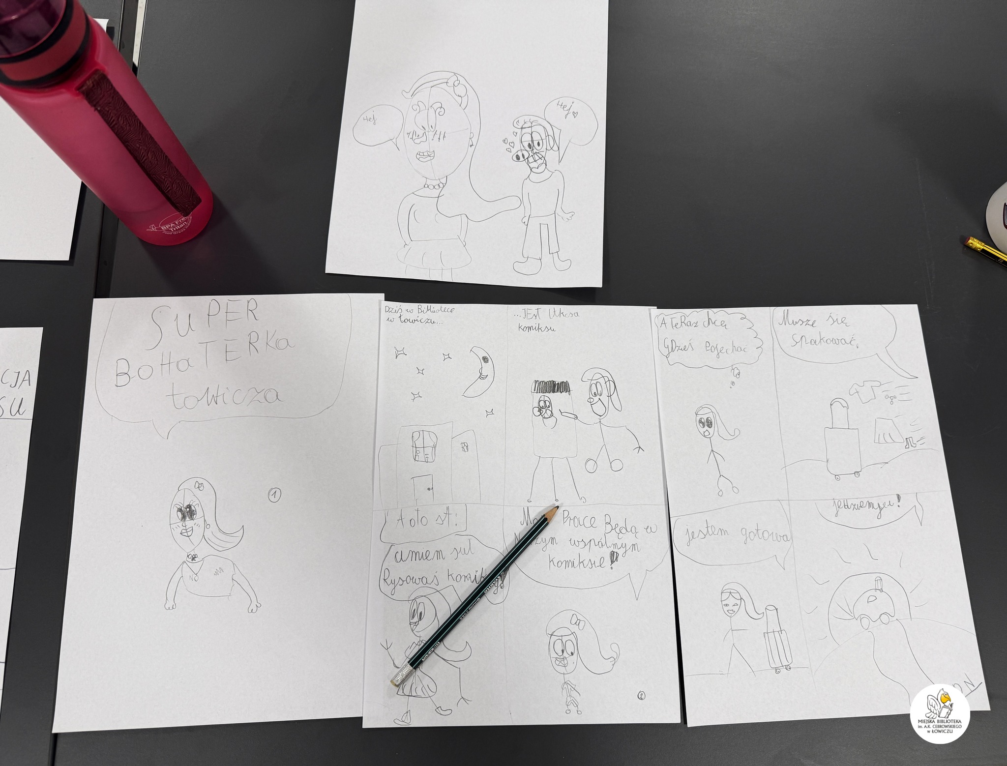 Wspólnie stworzyliśmy także kilkustronicowy komiks, którego głównym bohaterem – co wyjątkowo ciekawe – była każda z osób rysujących. Akcja komiksu rozgrywała się częściowo w naszej Bibliotece, a częściowo w samym Łowiczu.