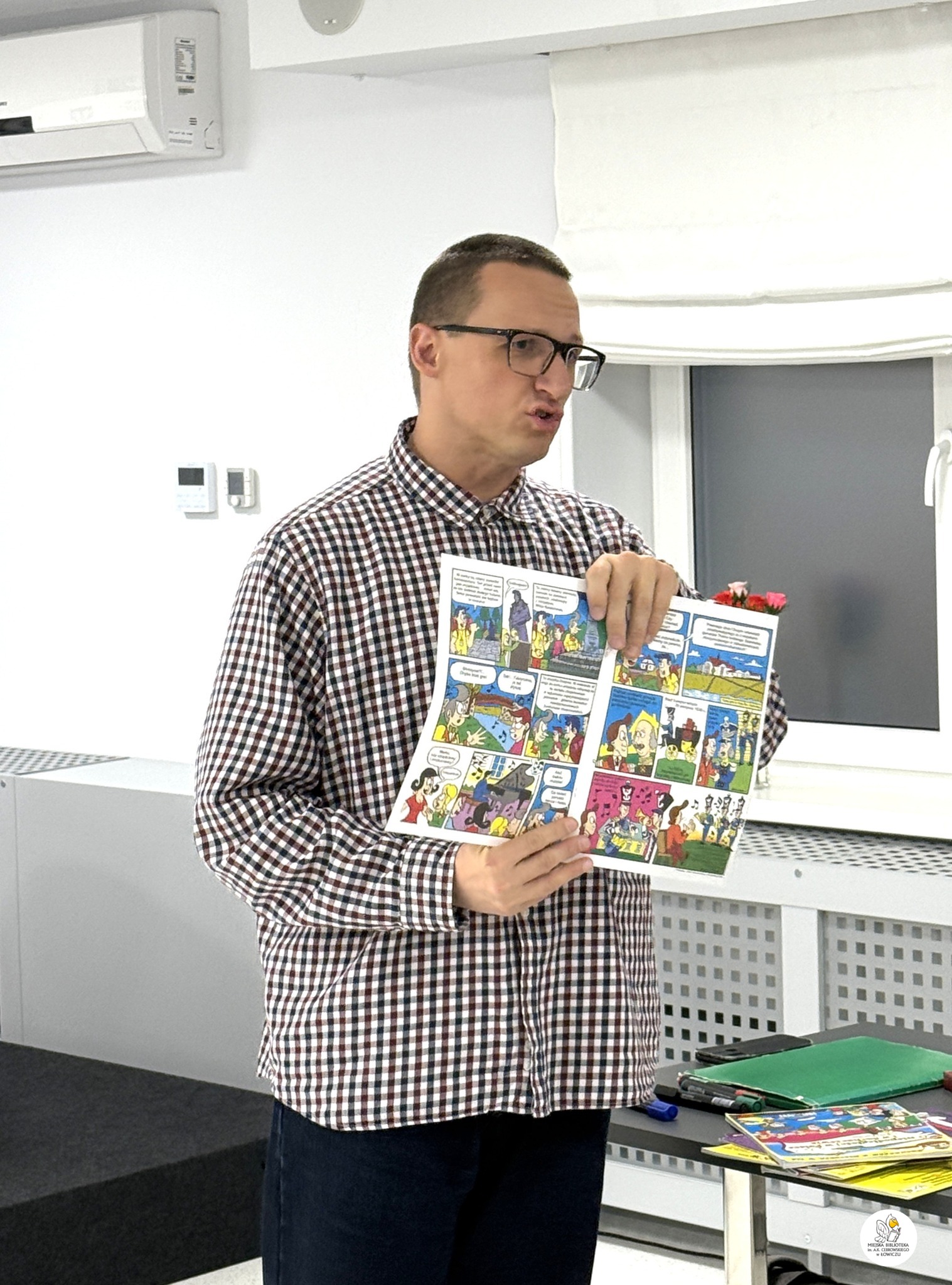 We wtorek, 25 listopada, w Miejskiej Bibliotece im. A. K. Cebrowskiego w Łowiczu odbyło się spotkanie Klubu Miłośników Komiksu. Koordynator wydarzenia, Jacek Rybus, zachęcił uczestników do sięgania po komiksy oraz poinformował, że osoby biorące udział w warsztatach nauki rysowania komiksu będą wspólnie tworzyć komiks o Łowiczu. Projekt ten poprowadzi obecny na spotkaniu Łukasz Kuciński, znany również jako Bofzin — autor ponad 40 albumów komiksowych.