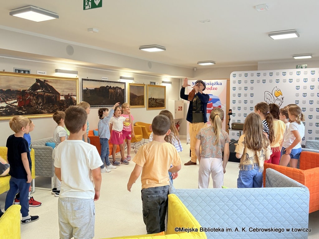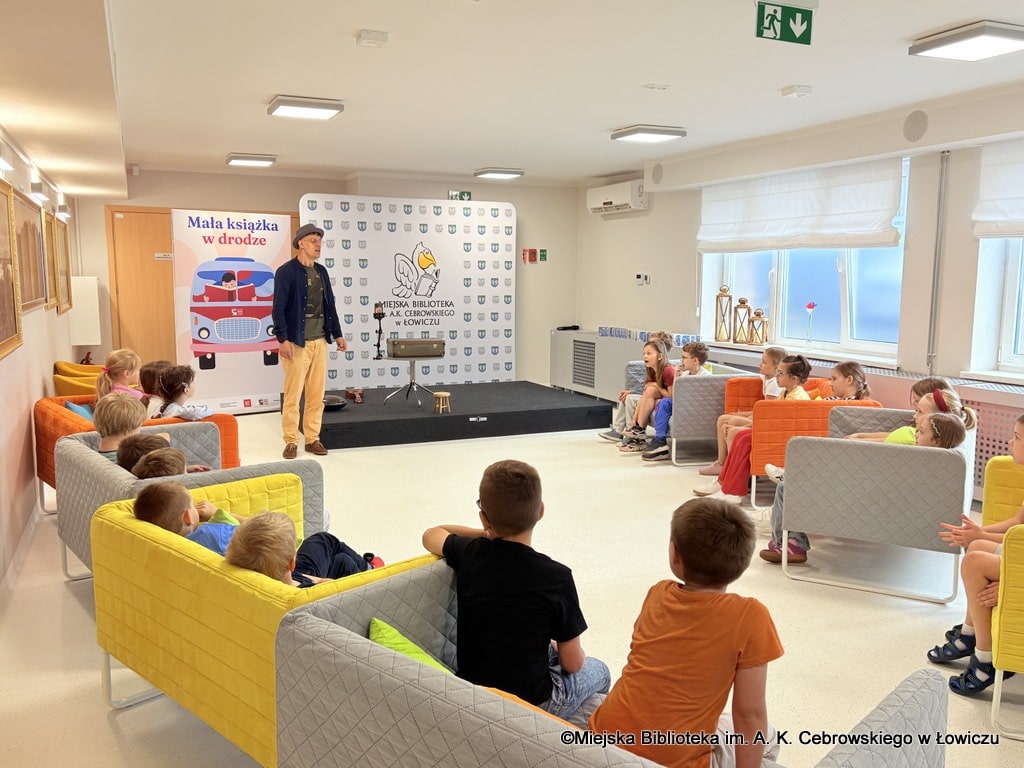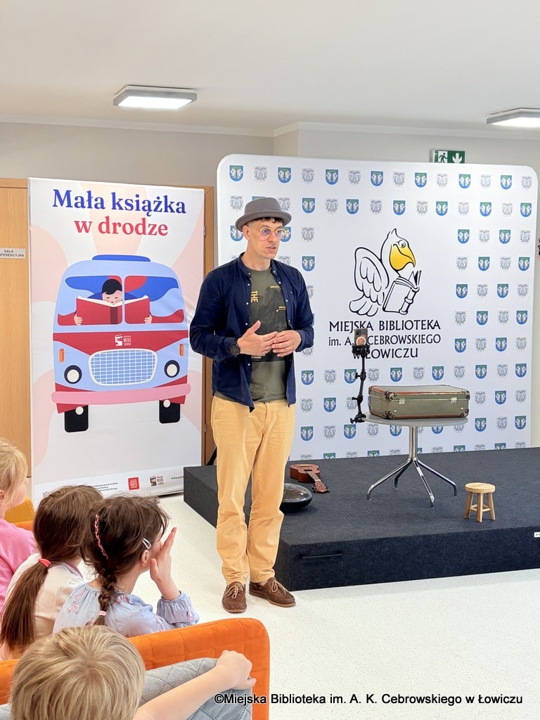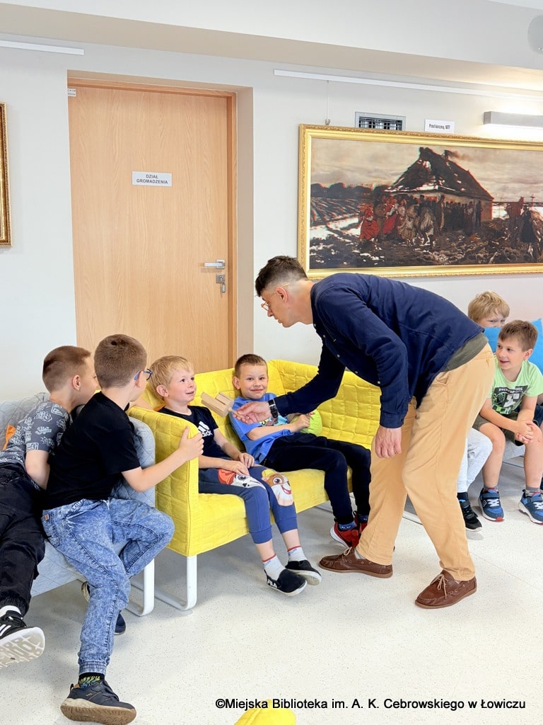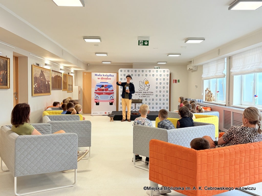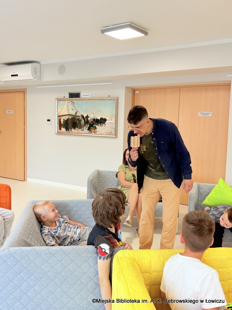 Podczas spotkania dzieci nie tylko słuchały historii, ale też aktywnie uczestniczyły w rozmowie i zabawach inspirowanych książką. Prowadzący z pasją angażował młodych uczestników, budując atmosferę pełną śmiechu, ciekawości i wzajemnego słuchania.