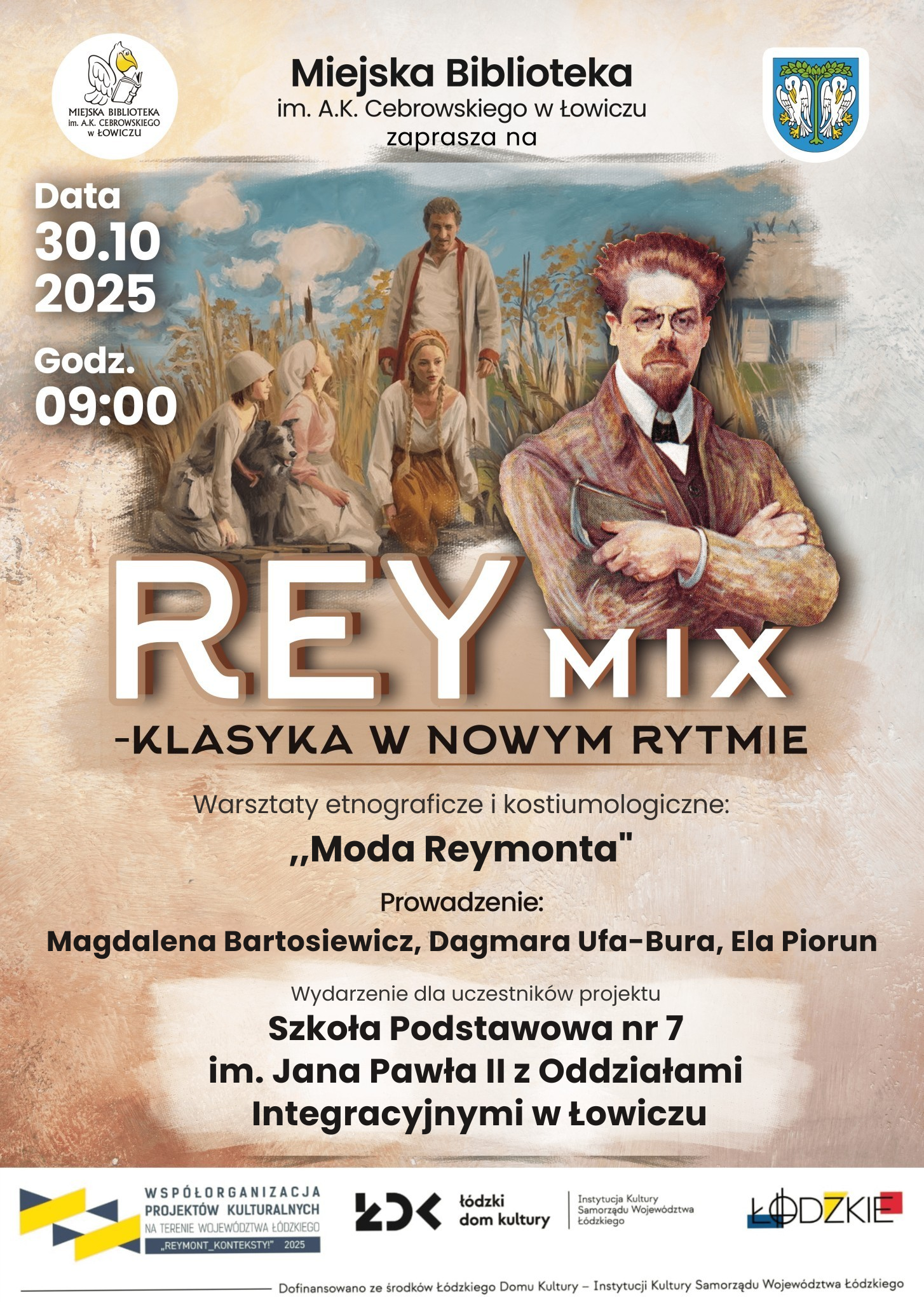 w ramach projektu „REYmix – klasyka w nowym rytmie” realizowanego w ramach naboru na współorganizację projektów kulturalnych związanych z obchodami Roku Władysława Stanisława Reymonta – REYMONT_KONTEKSTY! 2025, organizowanego przez Łódzki Dom Kultury.