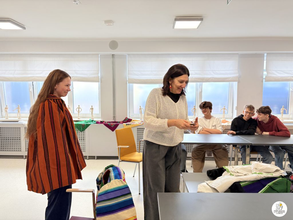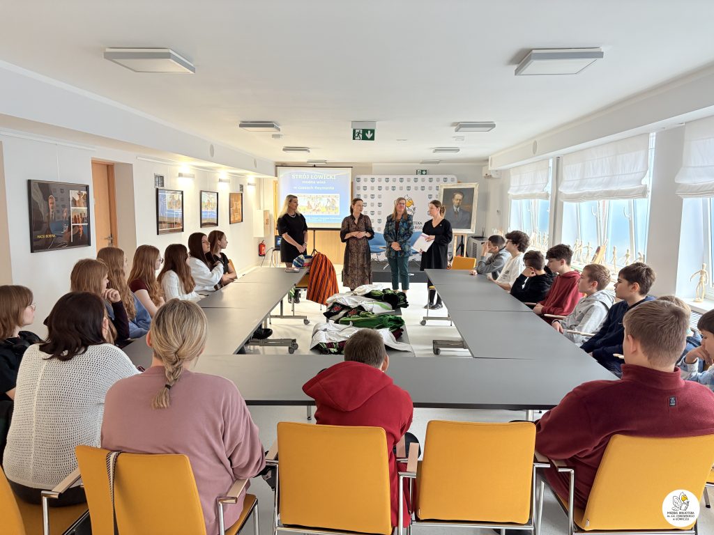 Były to bardzo ciekawe i inspirujące warsztaty. Etnolog Magdalena Bartosiewicz wprowadziła uczestników w tajniki łowickiego stroju ludowego, zwracając szczególną uwagę na stroje noszone przez bohaterów powieści „Chłopi”. Jak się okazało dla łowickiej młodzieży była to wiedza zupełnie nowa i zaskakująca. Poznaliśmy genezę powstania łowickiego stroju ludowego, prześledziliśmy jego rozwój i zachodzące w nim zmiany. Wiemy już jak wygląda łowicki strój ludowy męski, damski, wiemy jak ubierano dzieci. Młodzież miała okazję zobaczyć z bliska, dotknąć i przymierzyć elementy łowickiego stroju ludowego. Kolekcje strojów udostępniły prowadzące warsztaty p. Magdalena i p. Dagmara.