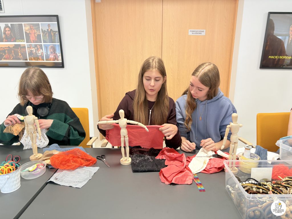Młodzież spotkała się z projektantką modową p. Elą Piorun, łowiczanką obecnie związaną zawodowo z Warszawą, która stworzyła dla nas moodboardy modowe w stylu Jagny, Macieja i Antka Borynów, Hanki i Wójta, czyli współczesne wizerunki Reymontowskich bohaterów. Jakież to było dla nas zaskoczenie! Projektantka opowiedziała o swojej pracy, inspiracjach, współczesnych trendach modowych, markach modowych i młodzieżowej modzie. Okazało się, że uczestnicy warsztatów doskonale znają się na modzie. Poznawszy tajniki łowickiego stroju ludowego oraz współczesną modę, miksując trendy młodzież zaprojektowała etno kolekcję inspirowaną łowickim strojem ludowym!