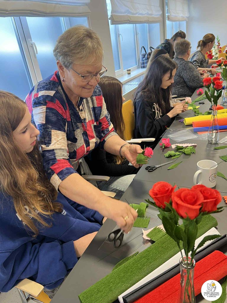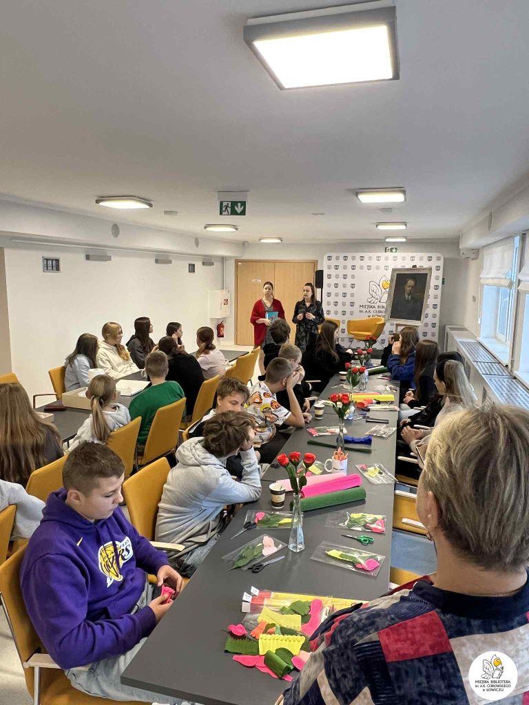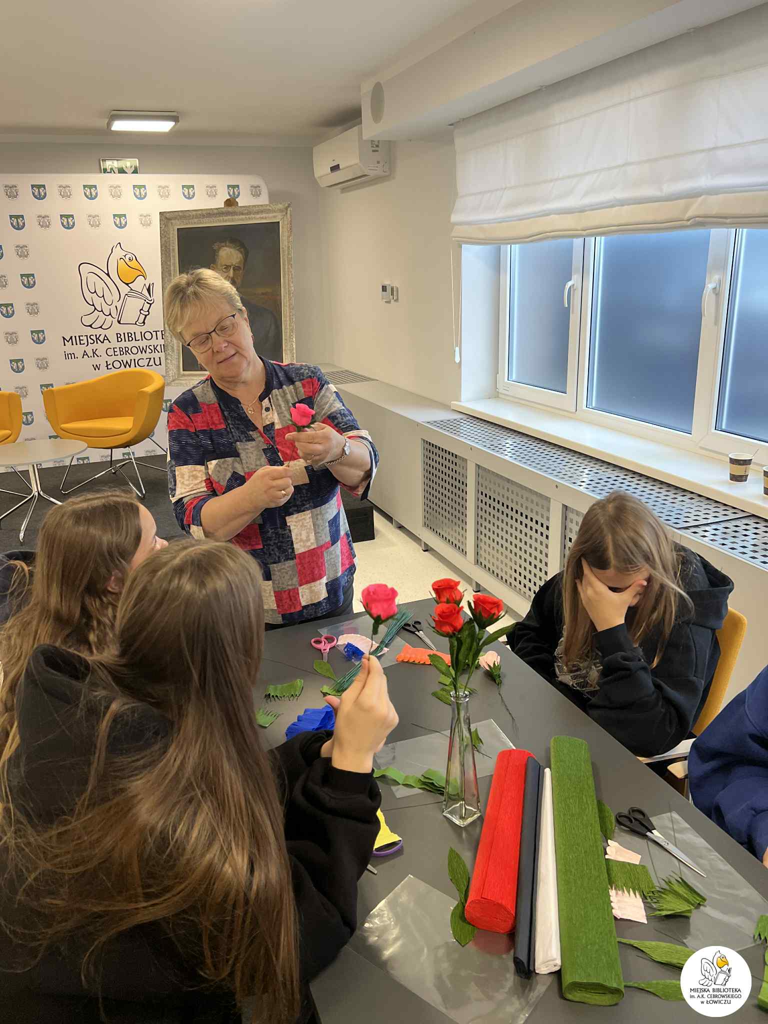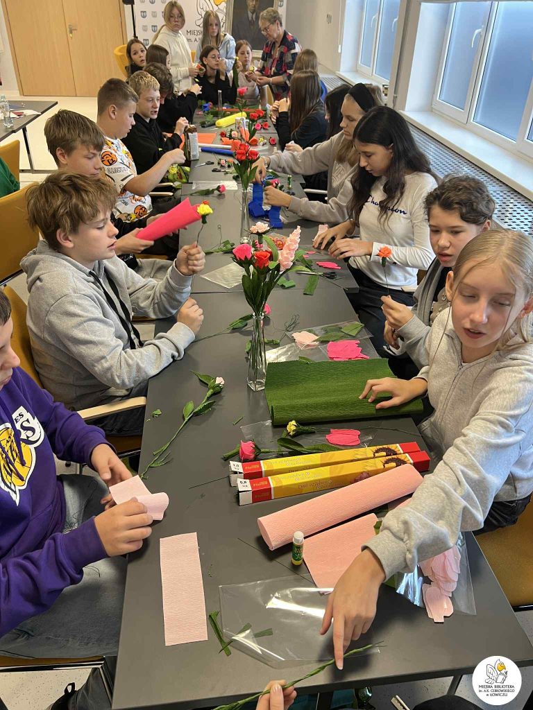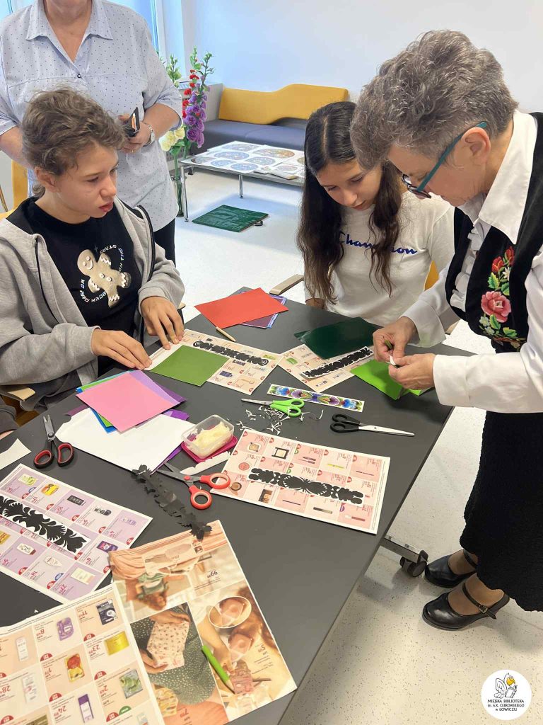 W dniu 2 października 2025 r. uczniowie Szkoła Podstawowa nr 3 im. kard. Karola Wojtyły – Papieża Polaka w Łowiczu uczestniczyli w warsztatach rękodzielniczych „Z rękodziełem u Reymonta”. Warsztaty poprowadziły łowickie twórczynie ludowe, które przybliżyły młodzieży tradycyjne techniki wycinankarskie oraz sztukę wyrobu kwiatów z bibuły. Pani Wiesława Wojda wprowadziła uczestników w tajniki tradycyjnej wycinanki łowickiej, na zajęciach powstały wycinanki – zakładki i pocztówki z motywem kogucika. Sztuka robienia wycinanek choć piękna okazała się bardzo trudna. Pani Maria Radosiewicz nauczyła nas robienia pięknych kwiatów z bibuły. Stworzyliśmy okazałe bukiety kwiatowe.