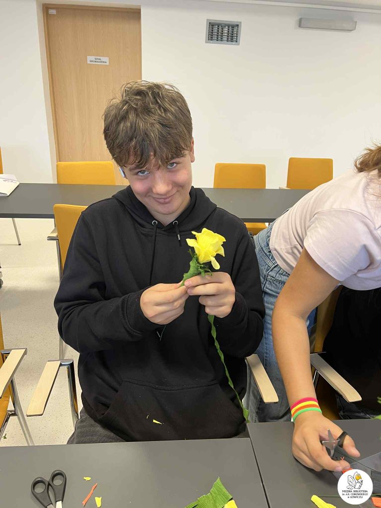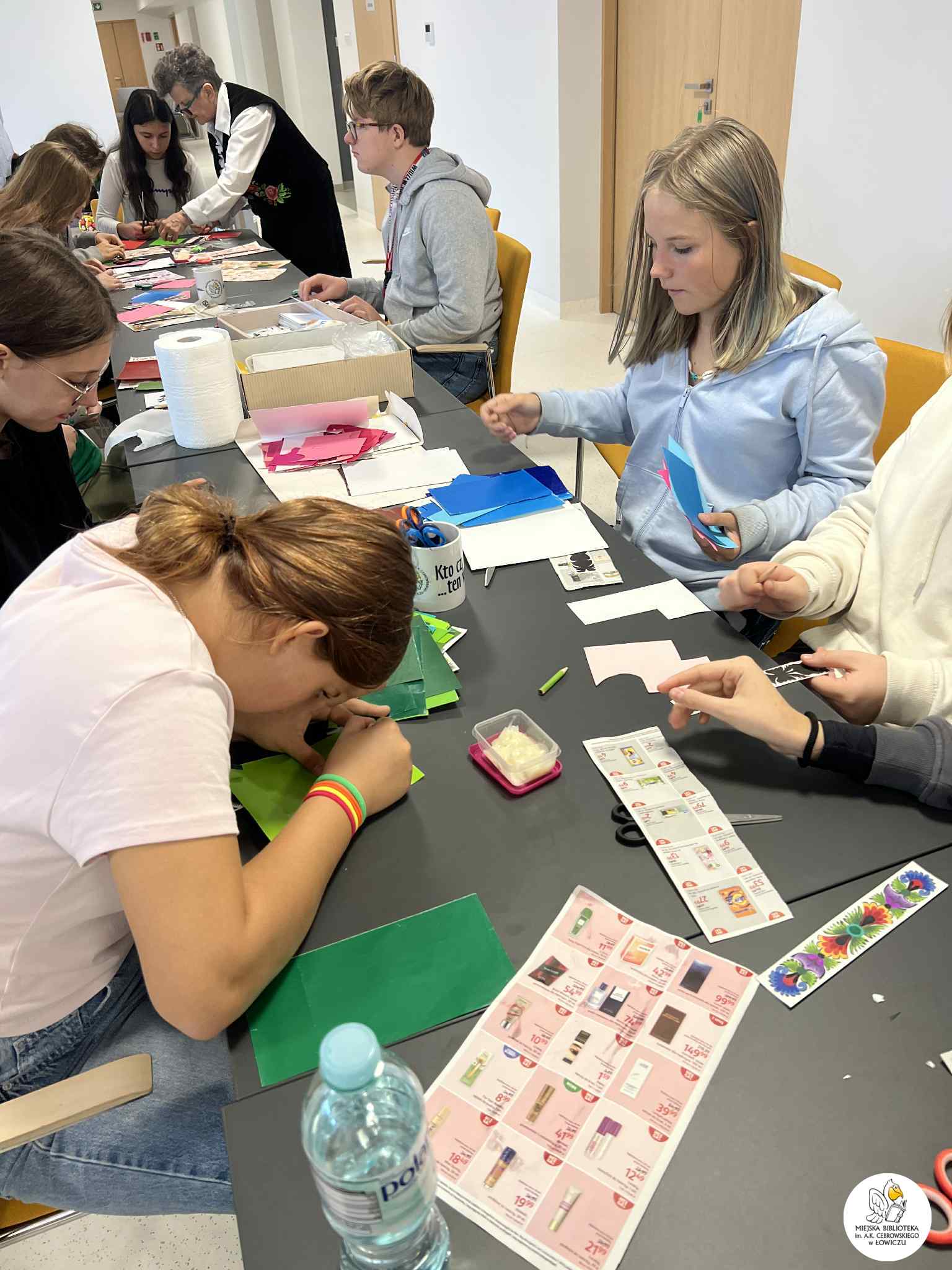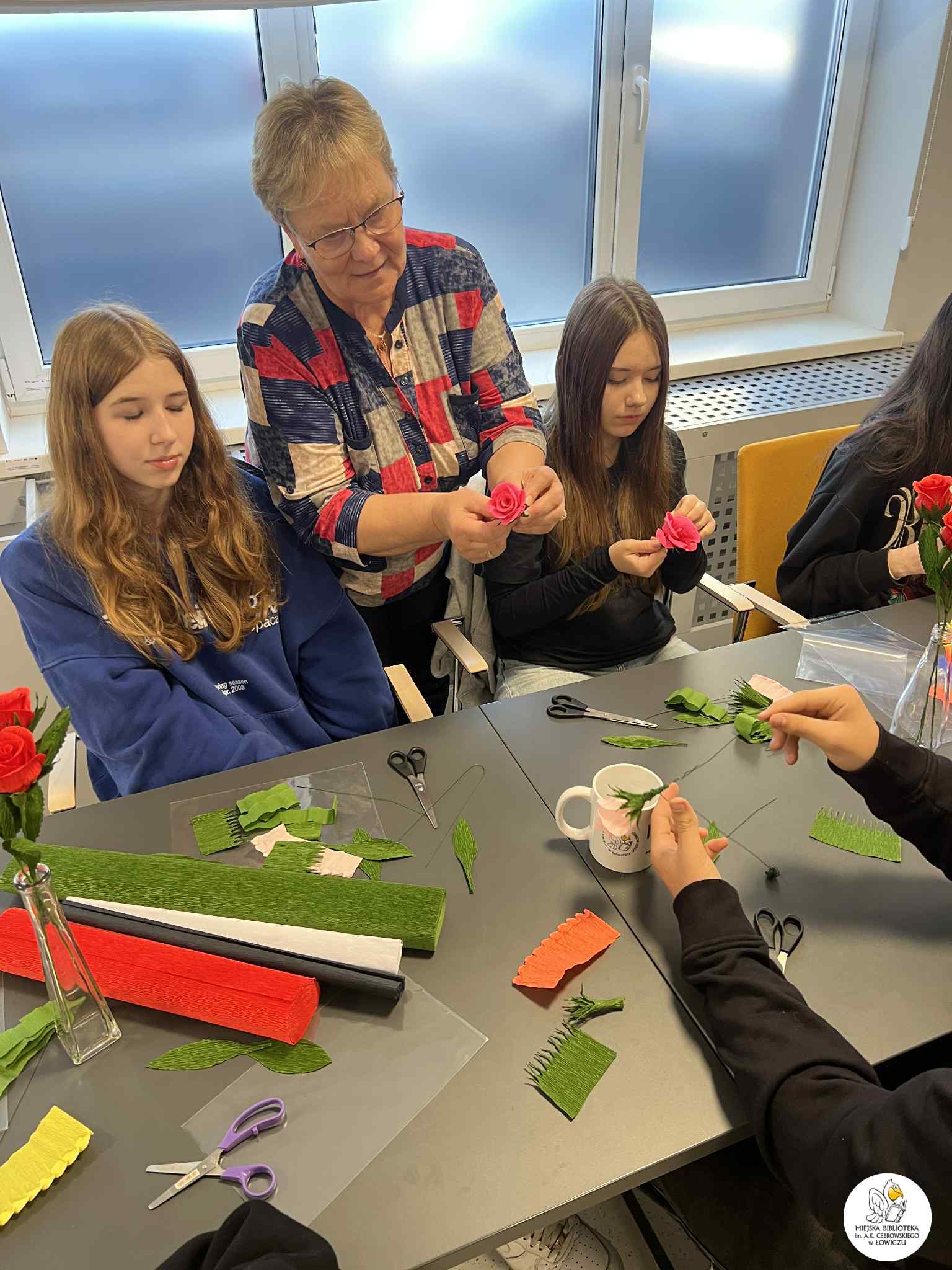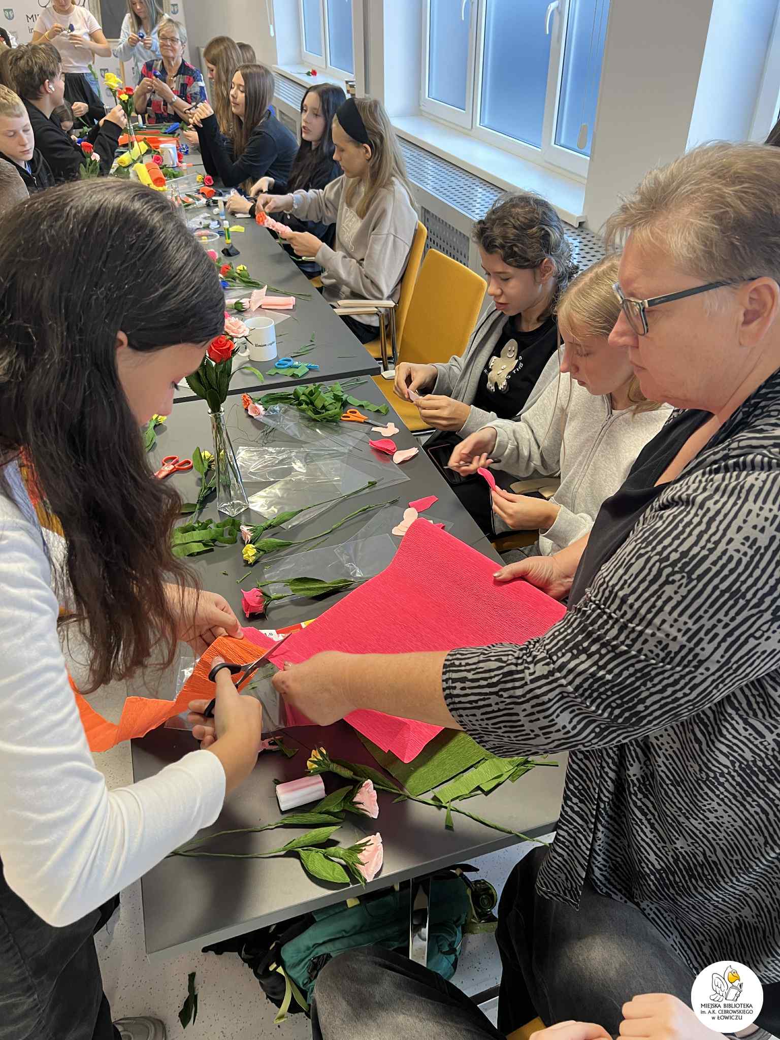 W dniu 2 października 2025 r. uczniowie Szkoła Podstawowa nr 3 im. kard. Karola Wojtyły – Papieża Polaka w Łowiczu uczestniczyli w warsztatach rękodzielniczych „Z rękodziełem u Reymonta”. Warsztaty poprowadziły łowickie twórczynie ludowe, które przybliżyły młodzieży tradycyjne techniki wycinankarskie oraz sztukę wyrobu kwiatów z bibuły. Pani Wiesława Wojda wprowadziła uczestników w tajniki tradycyjnej wycinanki łowickiej, na zajęciach powstały wycinanki – zakładki i pocztówki z motywem kogucika. Sztuka robienia wycinanek choć piękna okazała się bardzo trudna. Pani Maria Radosiewicz nauczyła nas robienia pięknych kwiatów z bibuły. Stworzyliśmy okazałe bukiety kwiatowe.