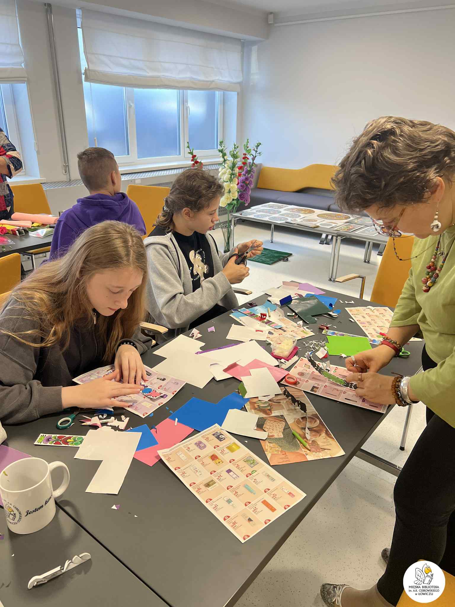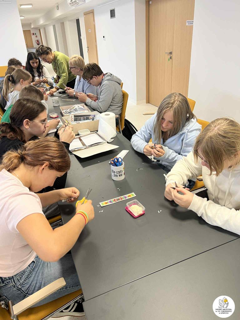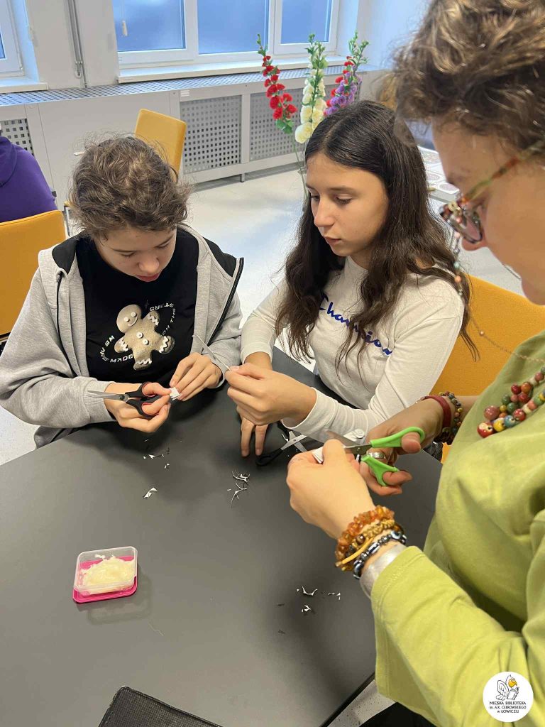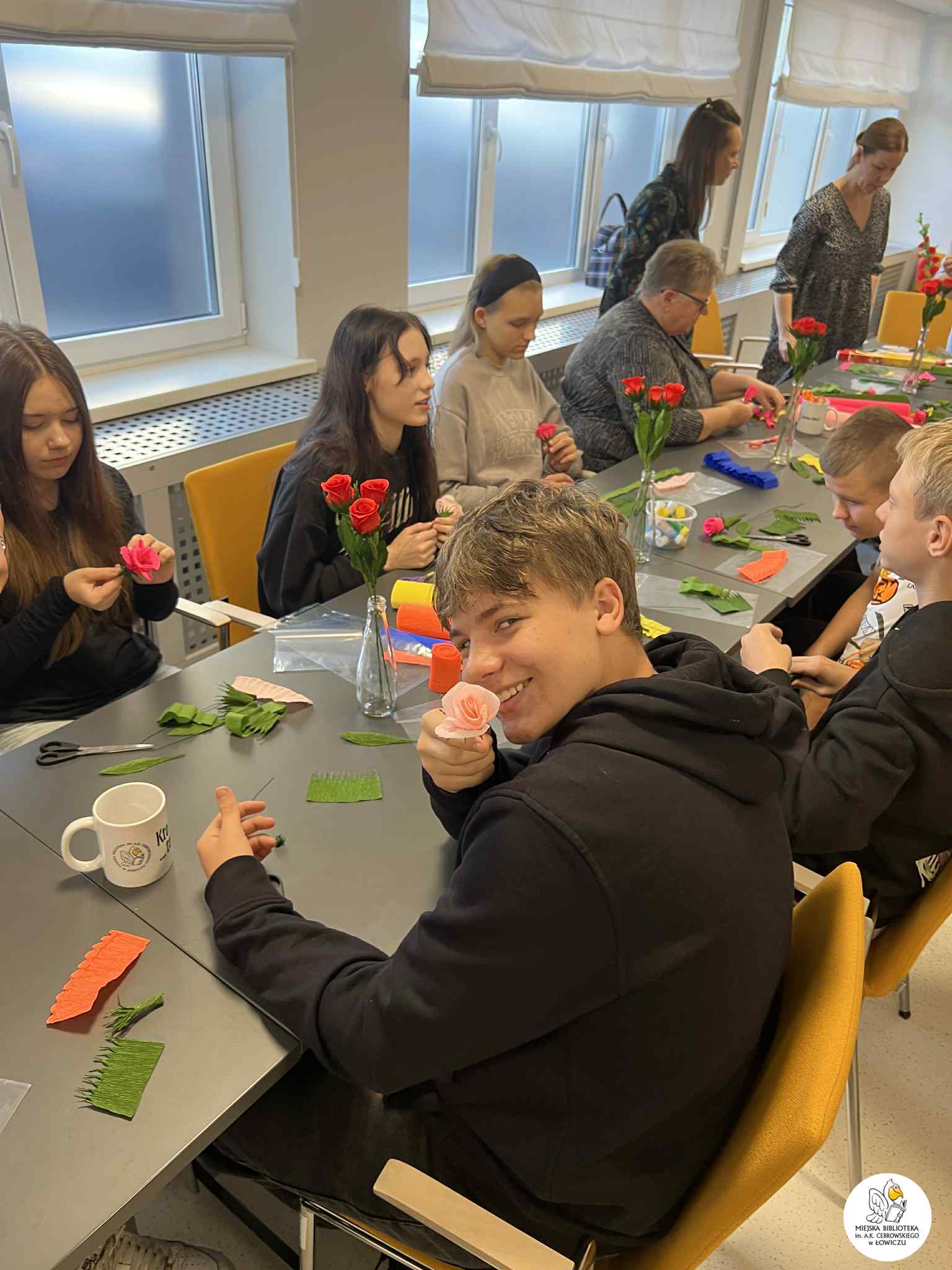 W dniu 2 października 2025 r. uczniowie Szkoła Podstawowa nr 3 im. kard. Karola Wojtyły – Papieża Polaka w Łowiczu uczestniczyli w warsztatach rękodzielniczych „Z rękodziełem u Reymonta”. Warsztaty poprowadziły łowickie twórczynie ludowe, które przybliżyły młodzieży tradycyjne techniki wycinankarskie oraz sztukę wyrobu kwiatów z bibuły. Pani Wiesława Wojda wprowadziła uczestników w tajniki tradycyjnej wycinanki łowickiej, na zajęciach powstały wycinanki – zakładki i pocztówki z motywem kogucika. Sztuka robienia wycinanek choć piękna okazała się bardzo trudna. Pani Maria Radosiewicz nauczyła nas robienia pięknych kwiatów z bibuły. Stworzyliśmy okazałe bukiety kwiatowe.