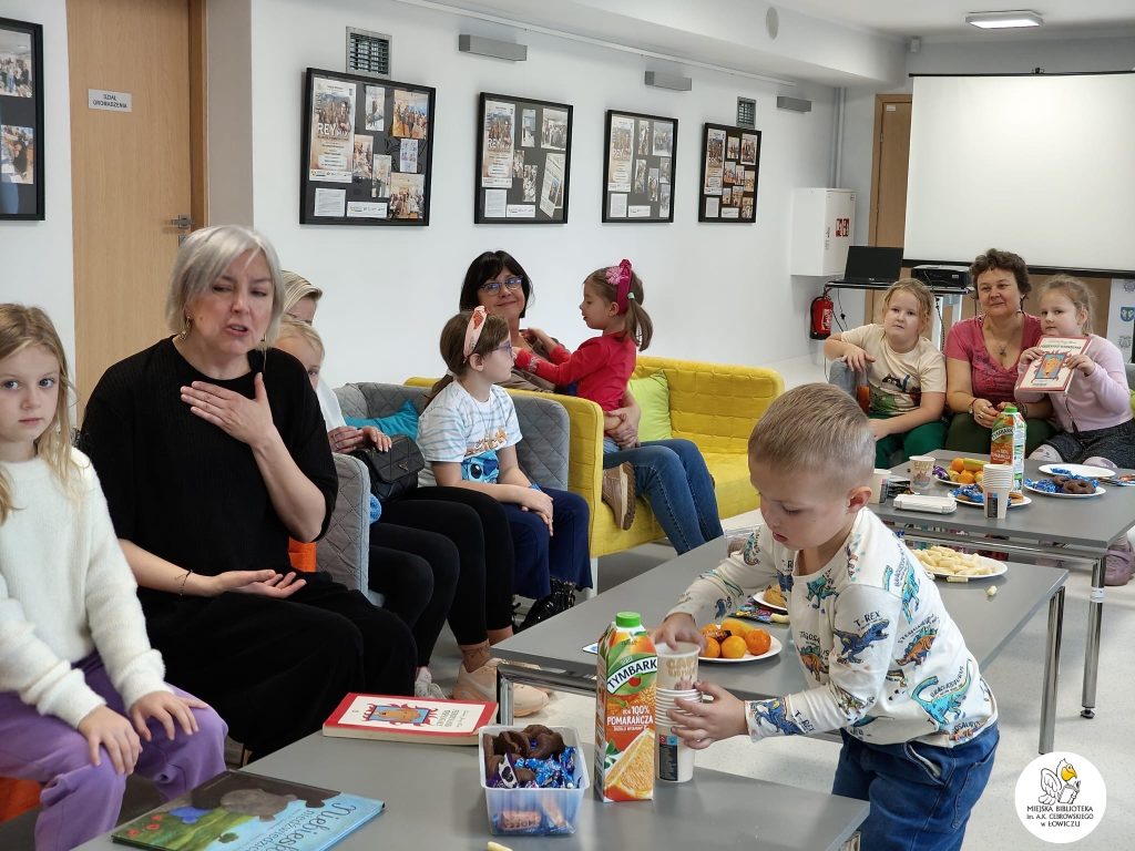 W sobotę, 15 listopada, odbyło się kolejne spotkanie Klubu Czytających Rodzin „Dzieciaki Czytaki”, działającego przy Miejskiej Bibliotece im. A.K. Cebrowskiego w Łowiczu. Było to wyjątkowe wydarzenie, bo świętowaliśmy nasze zwycięstwo – zdobyliśmy nagrodę główną w konkursie Fundacji Cała Polska czyta dzieciom. Okazało się, że nasze klubowe zajęcia zostały zauważone i uznane za najlepsze w całej Polsce — powód do ogromnej dumy i radości!