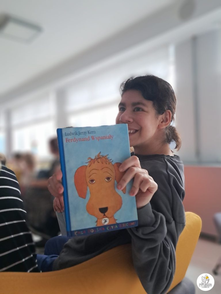 W minioną sobotę działo się naprawdę dużo! Na początku sięgnęliśmy po „Ferdynanda Wspaniałego” Ludwika Jerzego Kerna. Po przeczytaniu fragmentu obejrzeliśmy także odcinek klasycznej animacji. Urzekł nas jej niepowtarzalny urok, ale też doskonała dykcja lektorów. a przede wszystkim treść — poruszająca historia psa, który okazuje się bardziej ludzki niż niejeden człowiek. Ferdynand to pies pełen wdzięku, kultury i szlachetności. Nic dziwnego, że skradł nasze serca.