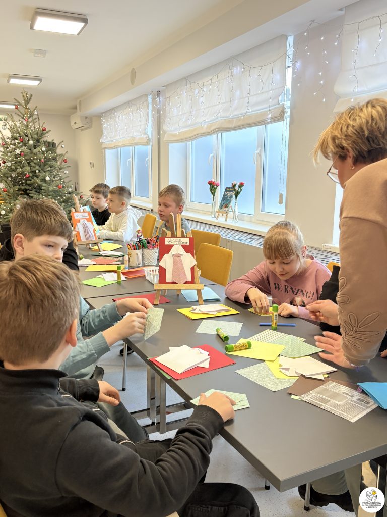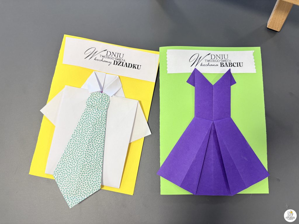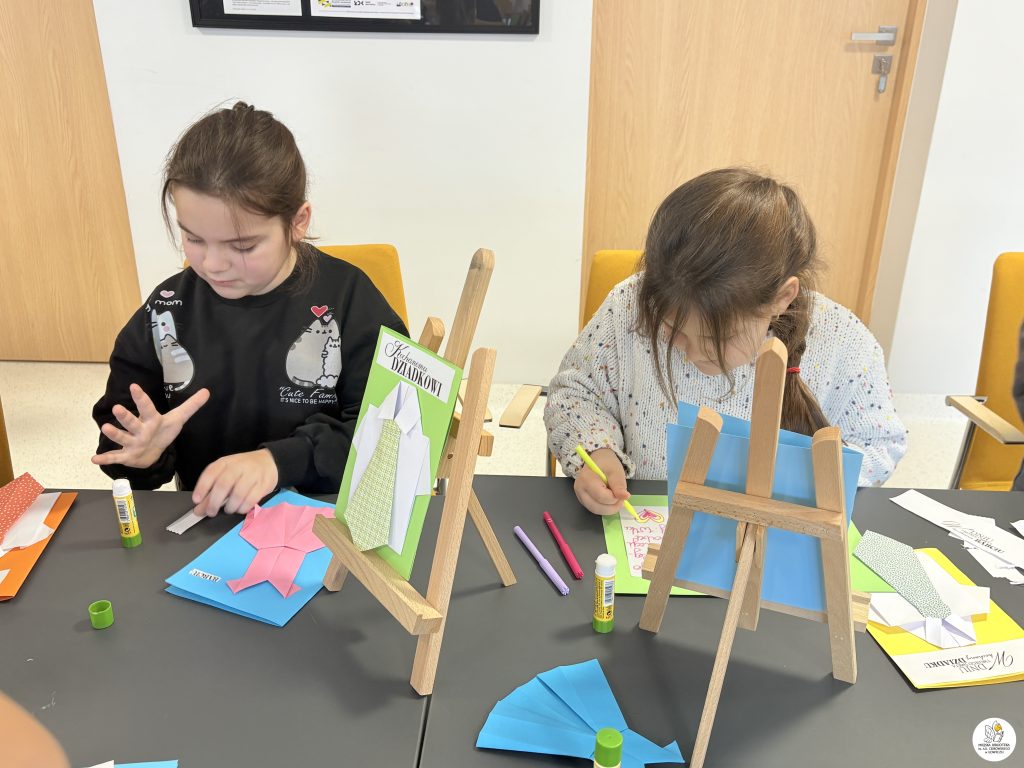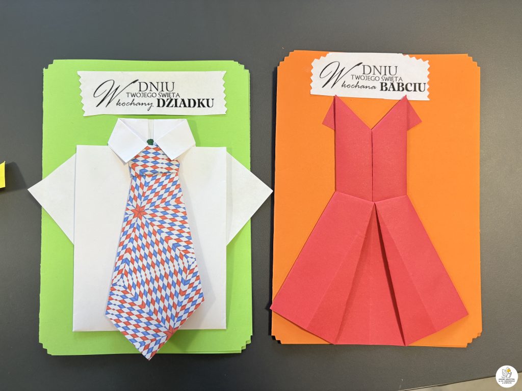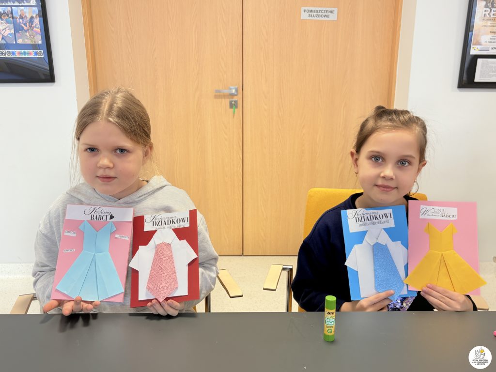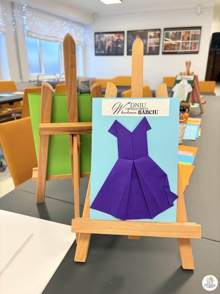 Dzieci z zaangażowaniem tworzyły piękne, kolorowe laurki dla swoich babć i dziadków metodą origami. Było dużo skupienia, wyobraźni i radości z własnoręcznie wykonanych prac.