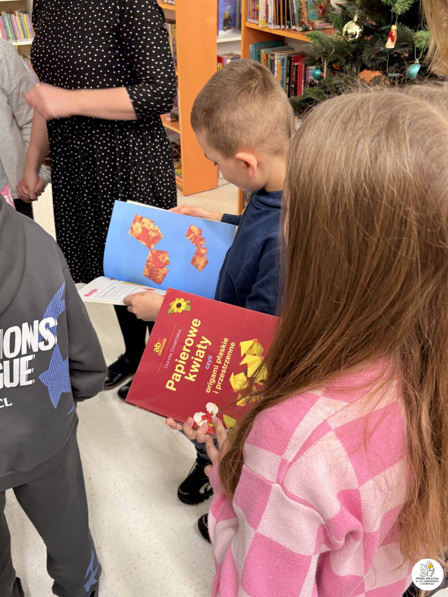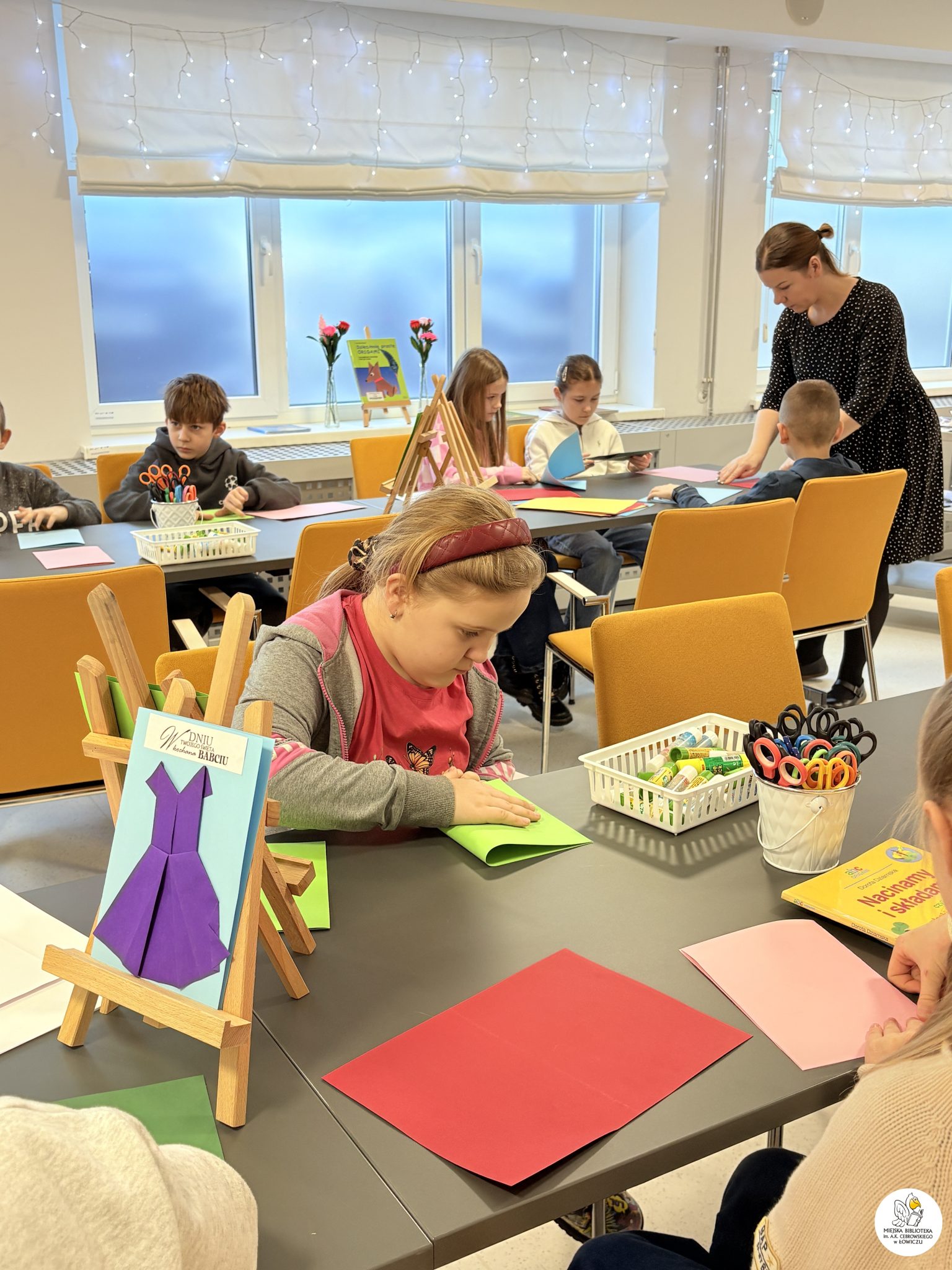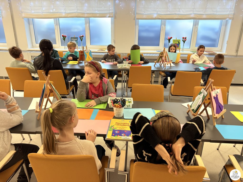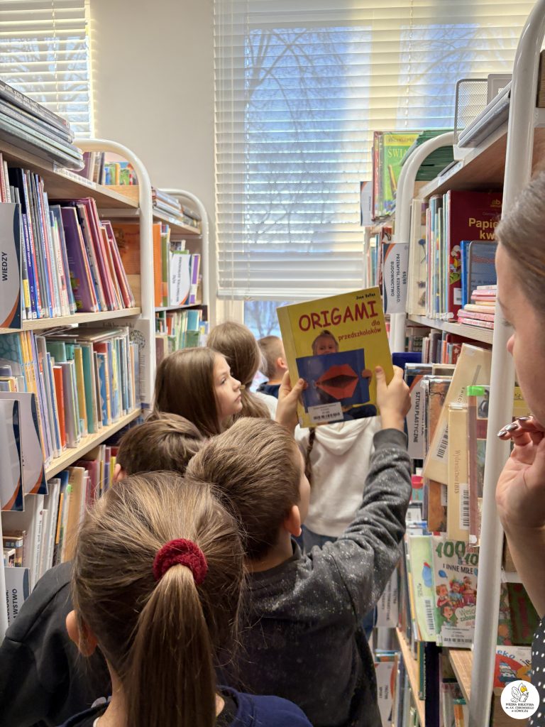 Dodatkowo mali uczestnicy samodzielnie wyszukiwali książki o origami w naszej wypożyczalni dla dzieci — brawo za ciekawość i samodzielność!
