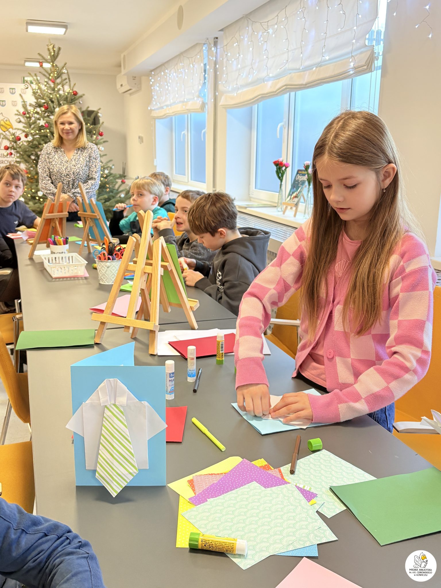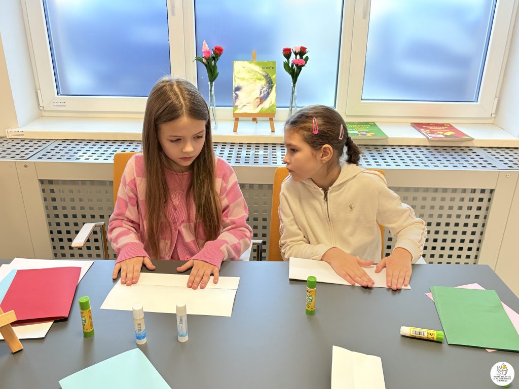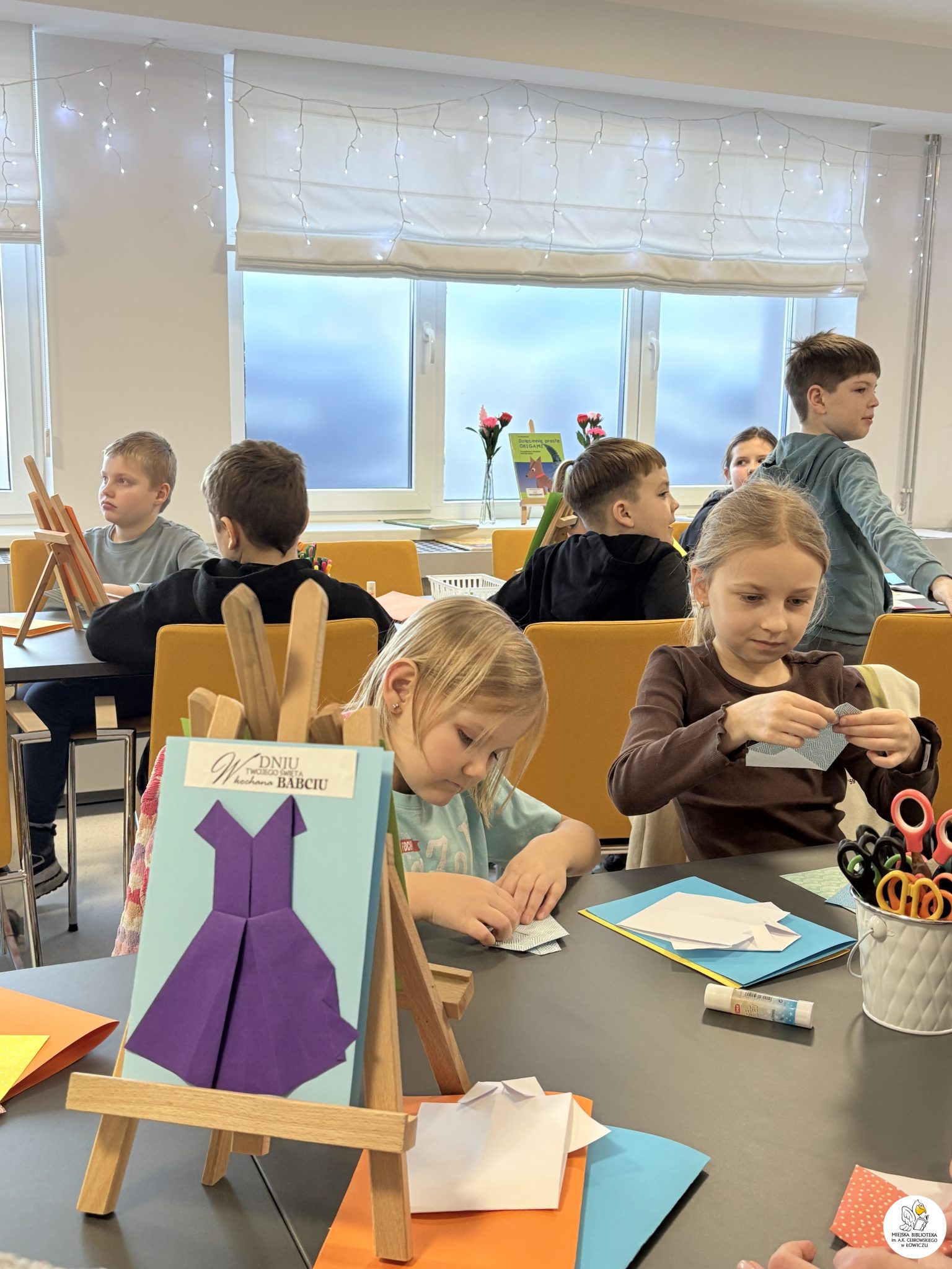 Dodatkowo mali uczestnicy samodzielnie wyszukiwali książki o origami w naszej wypożyczalni dla dzieci — brawo za ciekawość i samodzielność!
