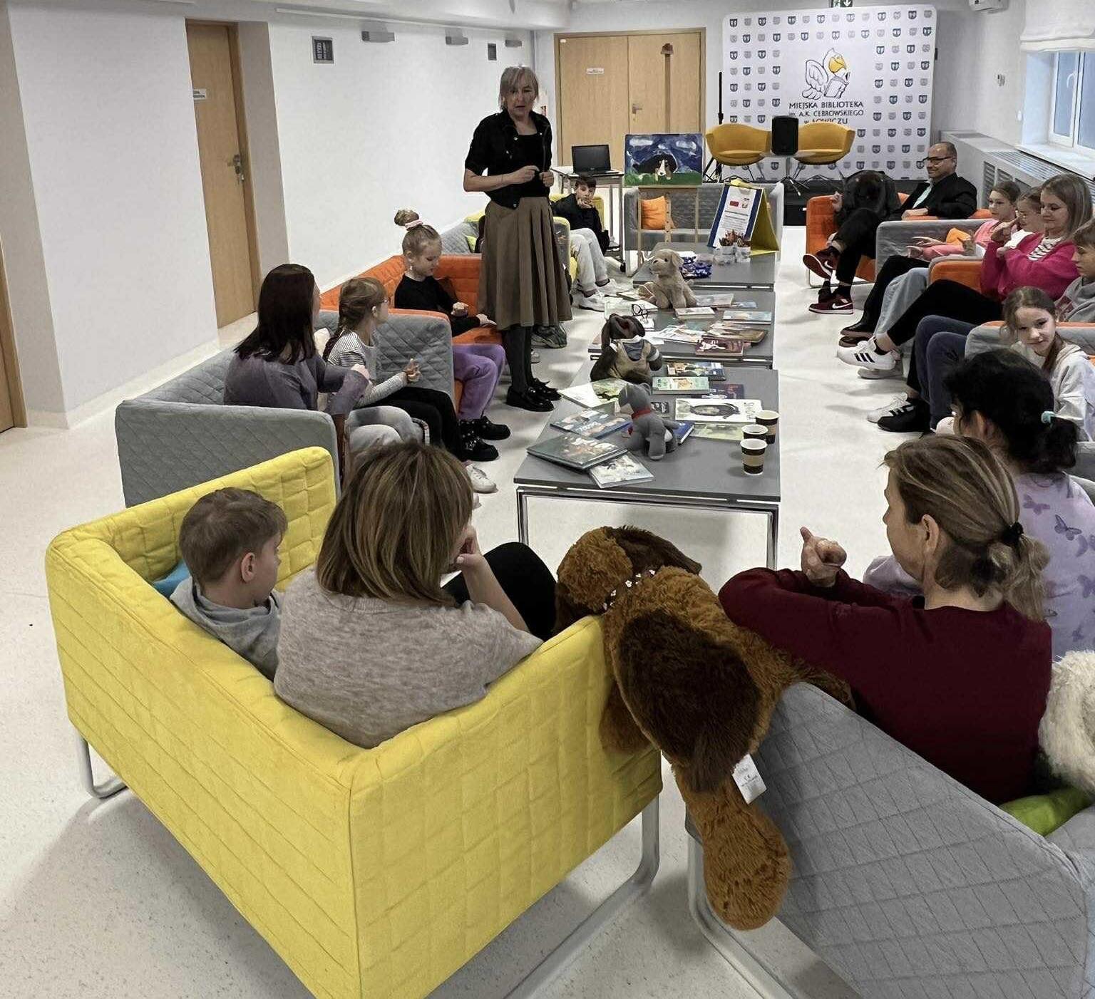 Spotkanie poświęcone było wzruszającej książce Barbary Gawryluk „Dżok” – historii niezwykłego psa, który stał się symbolem psiej wierności. Poznaliśmy wzruszające losy czworonoga, który przez lata czekał na swojego pana przy Rondzie Grunwaldzkim w Krakowie, nie wiedząc, że ten zmarł w karetce po ataku serca. Dżok nie ufał ludziom, choć chętnie przyjmował jedzenie — przez cały czas wierzył, że jego ukochany właściciel wróci. Czekał wciaz w tym samym miejscu. Mijały pory roku, zmieniała sie pogoda, Dżok był coraz starszy i wciąż tkwił na skwerze i czekał na swojego pana. Nie pozwalał się odłowić. Dopiero po dłuższym czasie zaufał pani Marii, u której zamieszkał. Niestety, również ona zmarła, a piesek zginął tragicznie pod kołami pociągu. Od tamtej pory historia Dżoka obrosła legendą i była przekazywana z ust do ust. Na szczęście Barbara Gawryluk postanowiła ją spisać — i dzięki temu mogliśmy ją dziś poznać w naszej bibliotece.