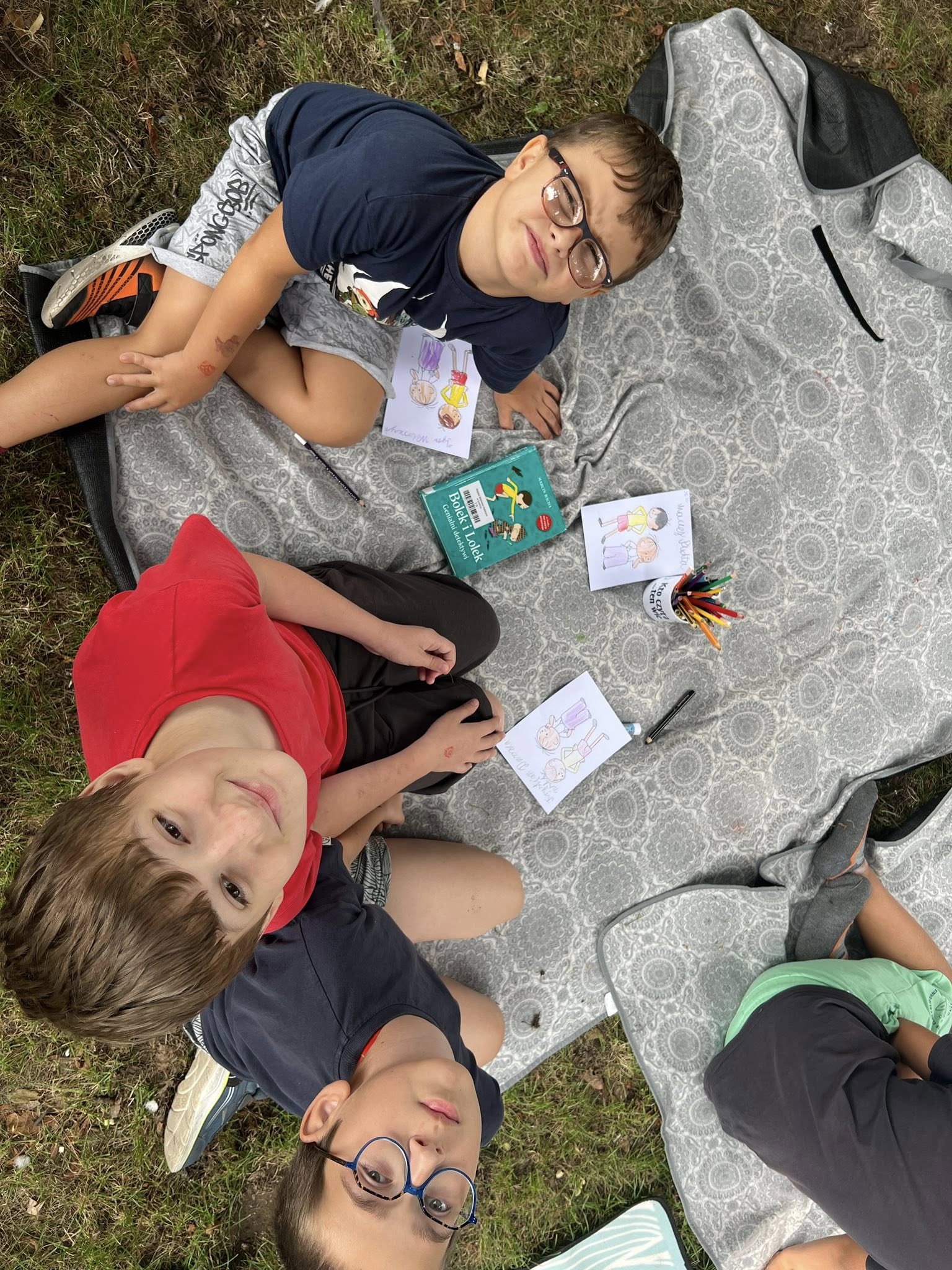 To już dziesiąty dzień naszych wakacyjnych spotkań z książką! Jak w każdy czwartek, spotkaliśmy się przed biblioteką, by wspólnie spędzić czas na czytaniu, zabawie i twórczych aktywnościach. Tym razem towarzyszyli nam niezastąpieni bohaterowie dzieciństwa – Bolek i Lolek!