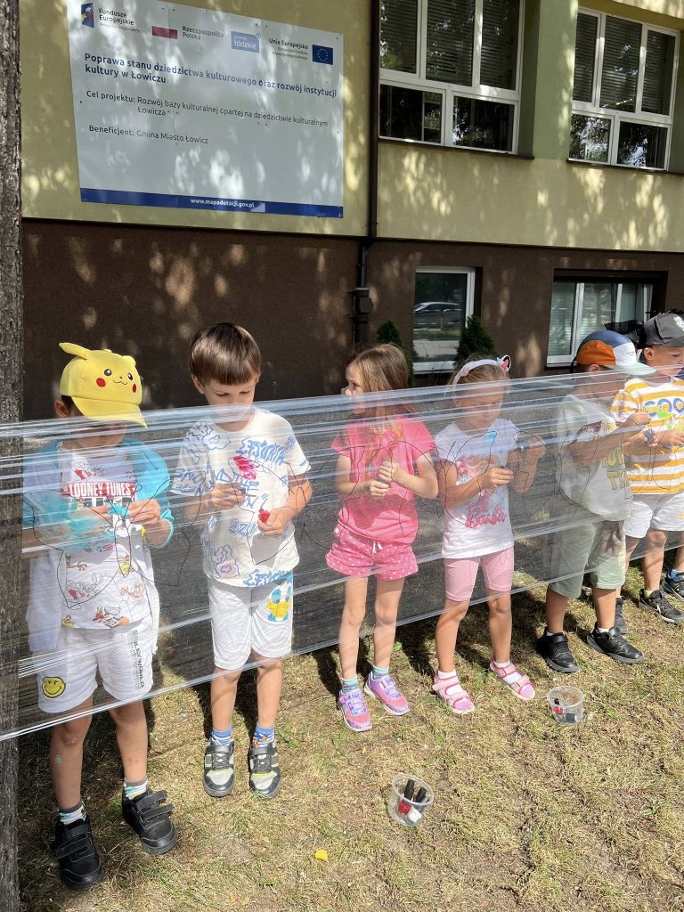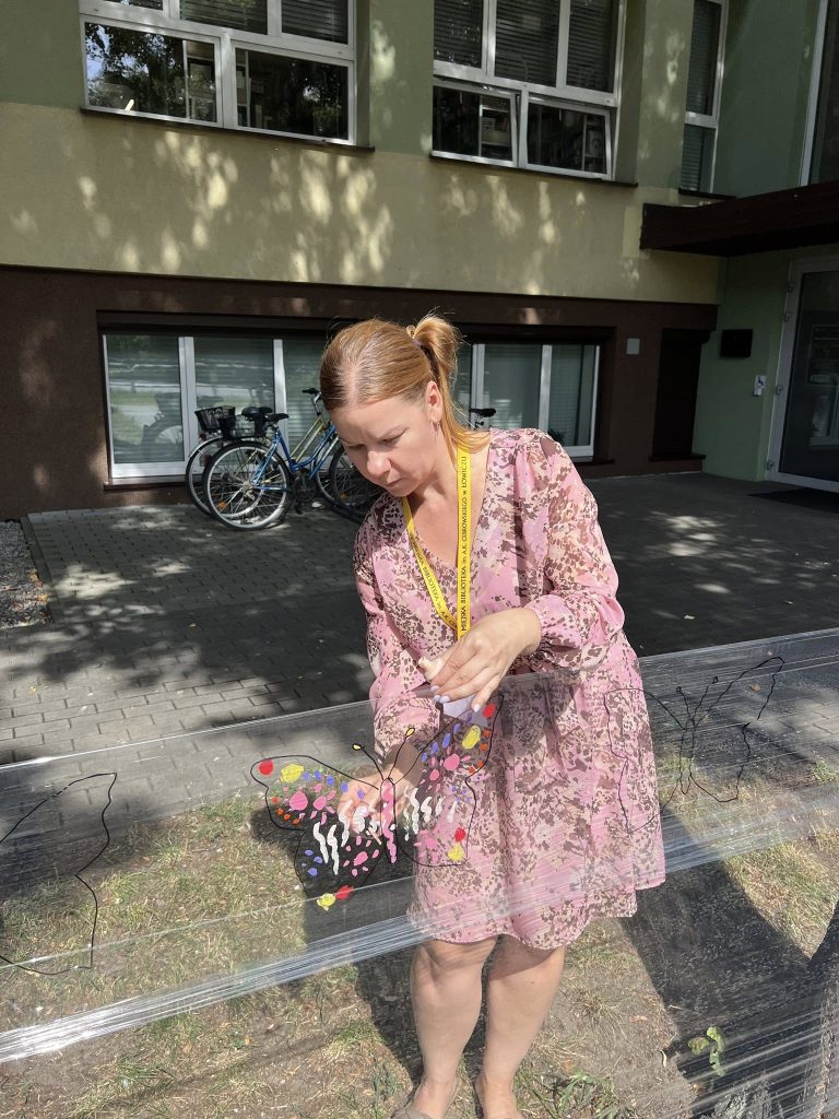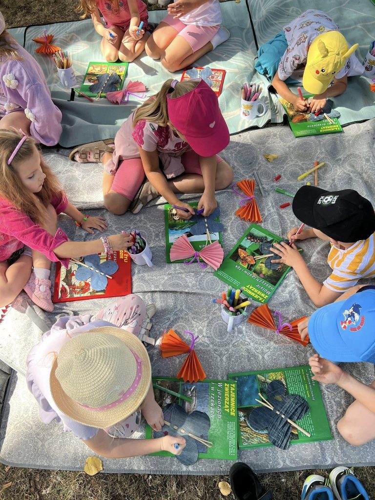 Po wspólnym czytaniu najmłodsi zamienili się w artystów – tworzyli kolorowe motyle-wachlarze, a także ozdabiali motyle malowane na streczu. Było mnóstwo frajdy, kreatywności i uśmiechów!