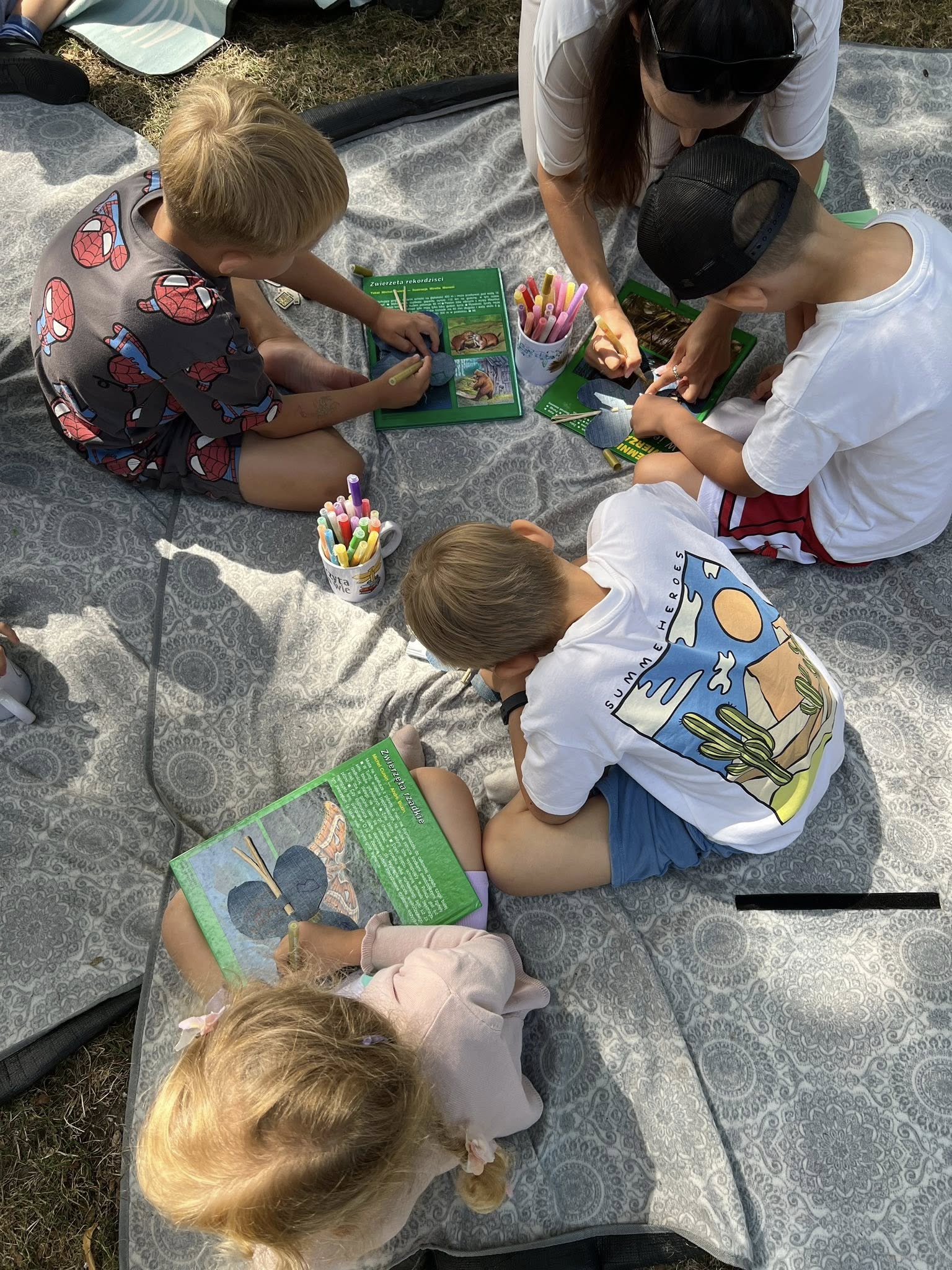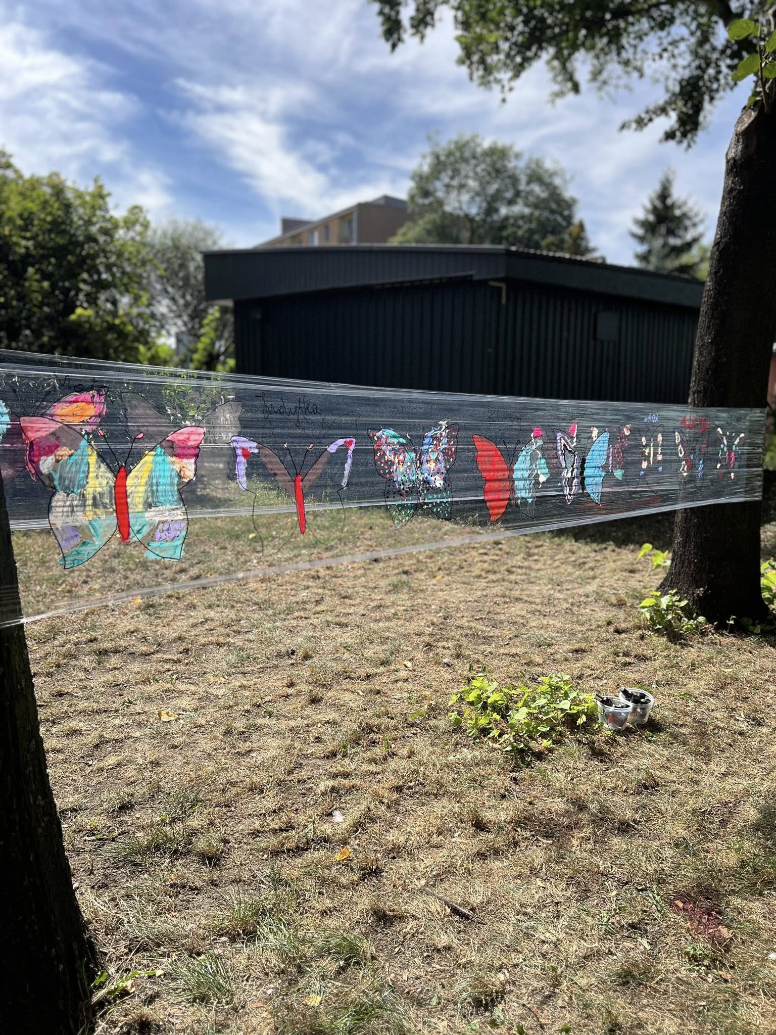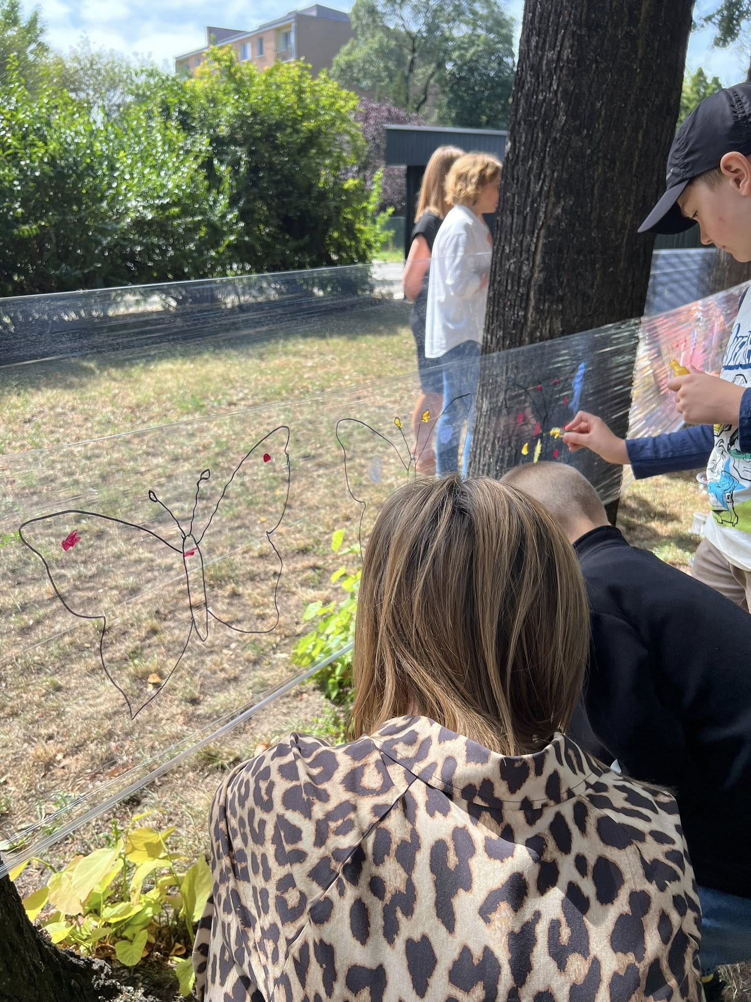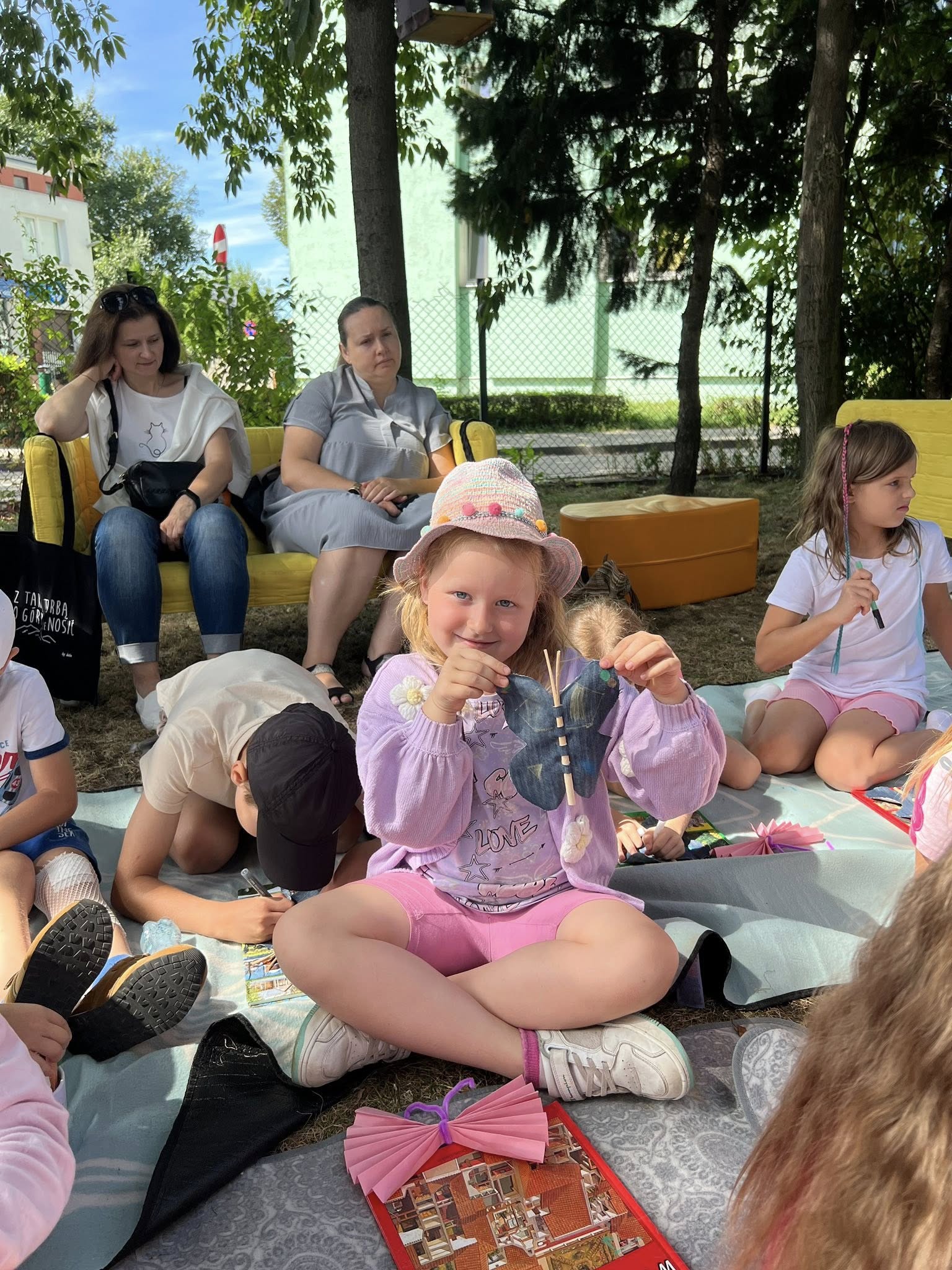 Po wspólnym czytaniu najmłodsi zamienili się w artystów – tworzyli kolorowe motyle-wachlarze, a także ozdabiali motyle malowane na streczu. Było mnóstwo frajdy, kreatywności i uśmiechów!